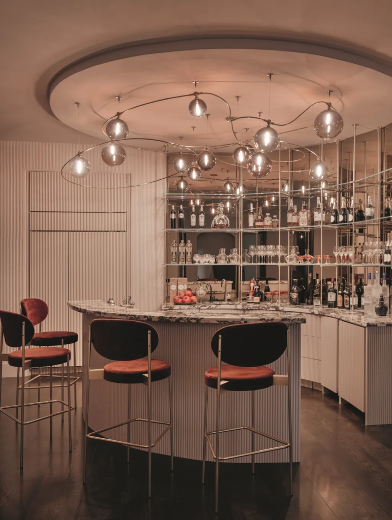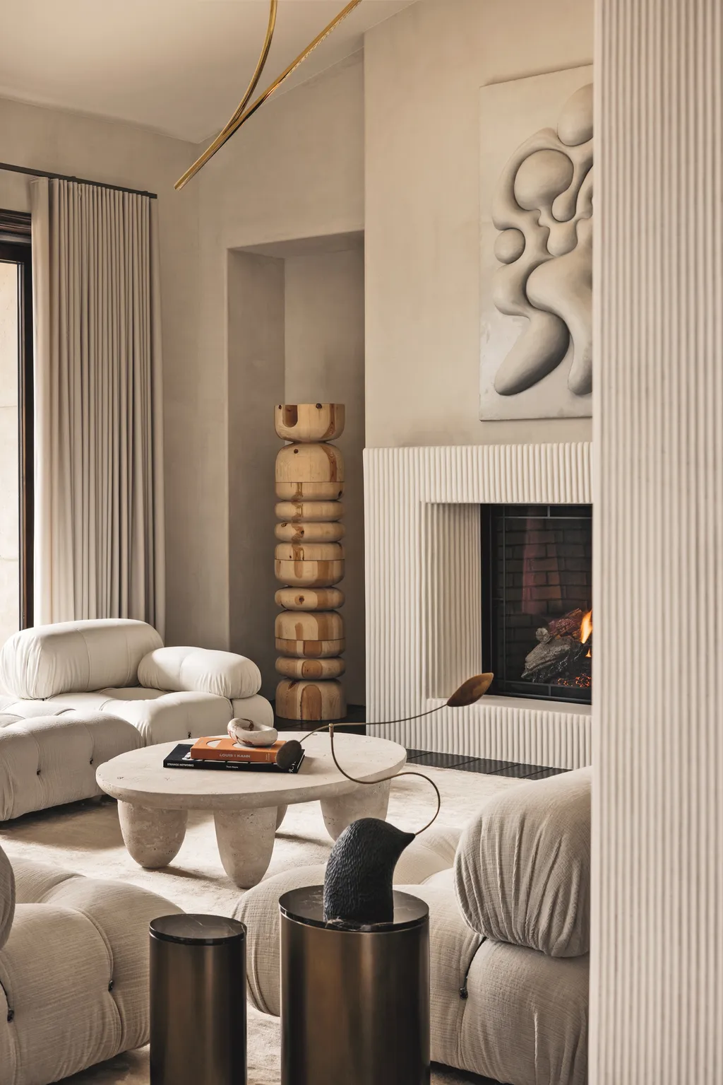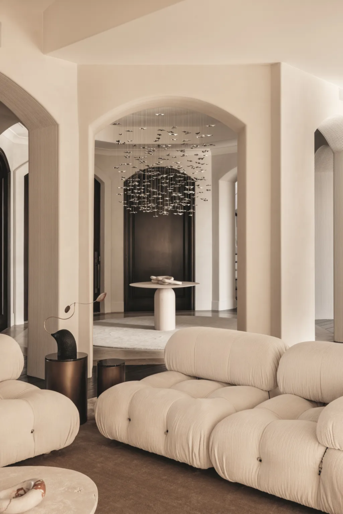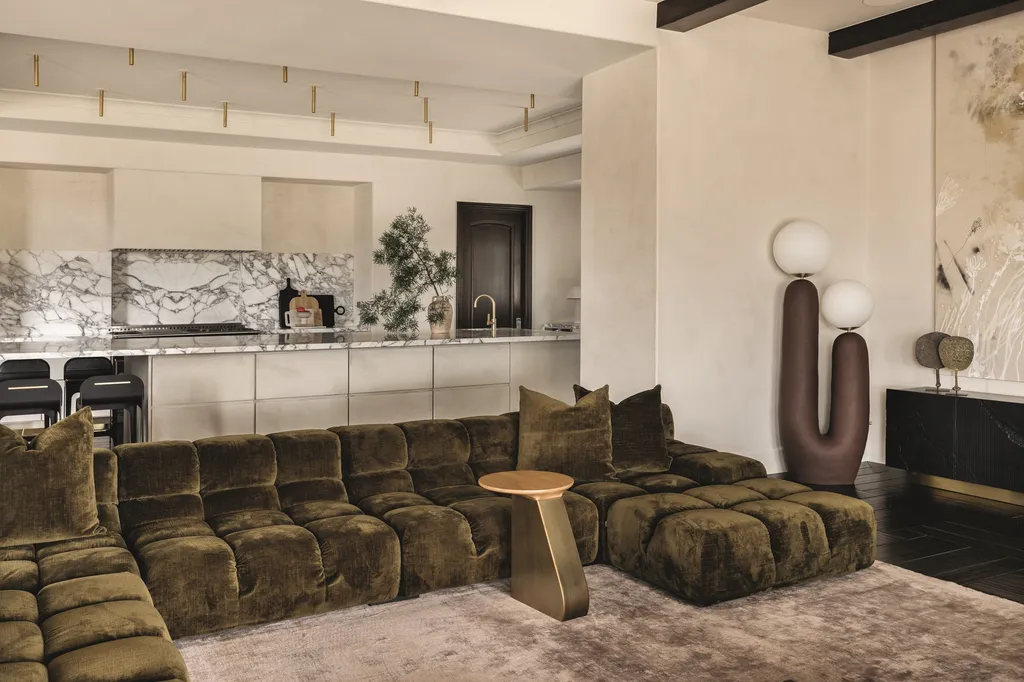 Το brief ήταν ξεκάθαρο: να σχεδιαστεί ένας κομψός, εκλεπτυσμένος εσωτερικός χώρος που όχι μόνο θα αντανακλούσε τα απαιτητικά γούστα των πελατών, αλλά θα παρείχε και ένα ασφαλές και φιλόξενο περιβάλλον για τα παιδιά τους. Τα μαλακά, στρογγυλεμένα έπιπλα, τα μοναδικά φωτιστικά και μια απαλή χρωματική παλέτα ήταν προτεραιότητες. Έχοντας συνεργαστεί με την οικογένεια στο παρελθόν, η Huma κατανόησε τις προτιμήσεις και το όραμά τους, ενώ παράλληλα μπορούσε να δημιουργήσει έναν χώρο που θα γιόρταζε την ξεχωριστή υλικότητα και τη γλυπτική μορφή.