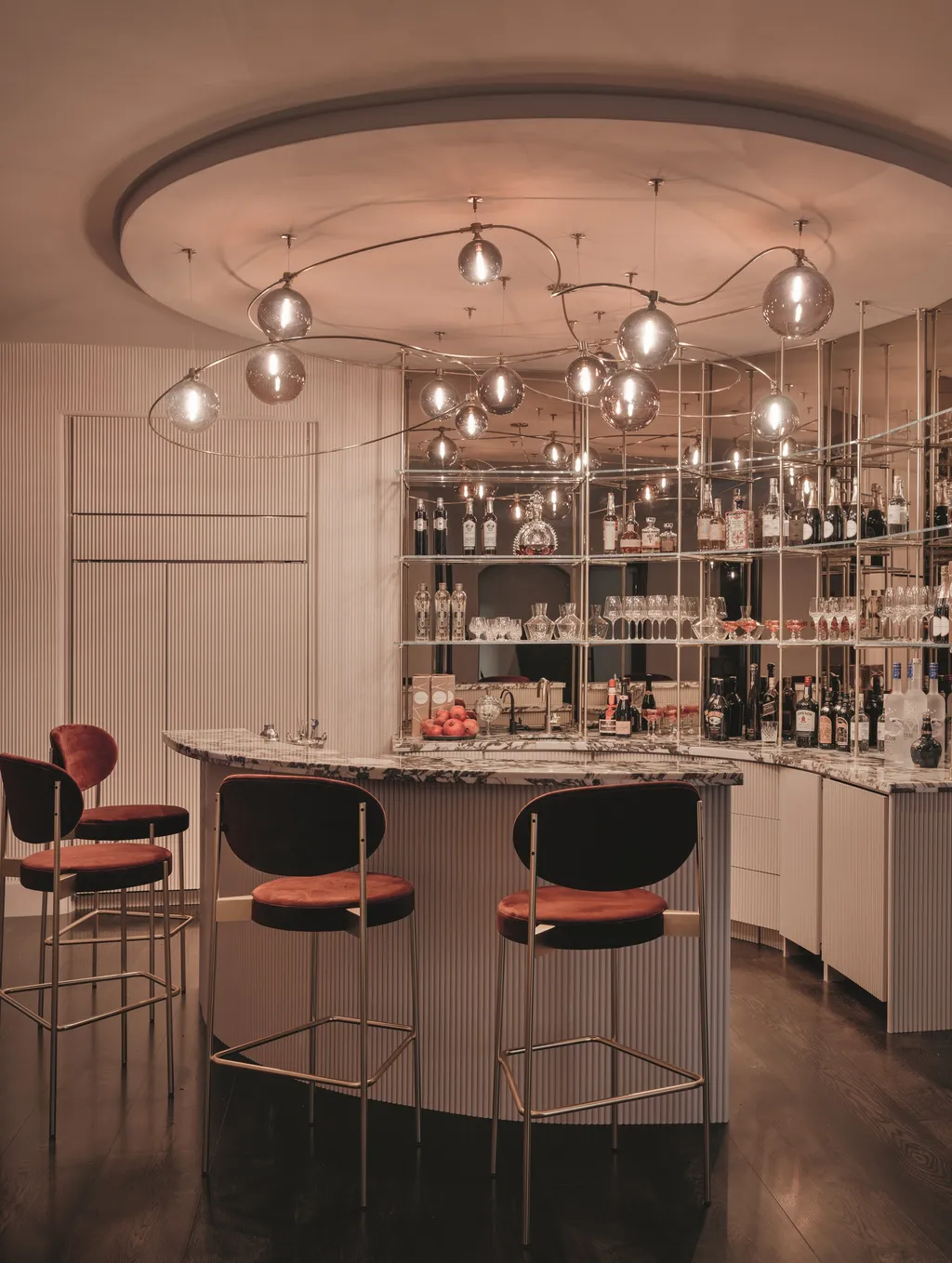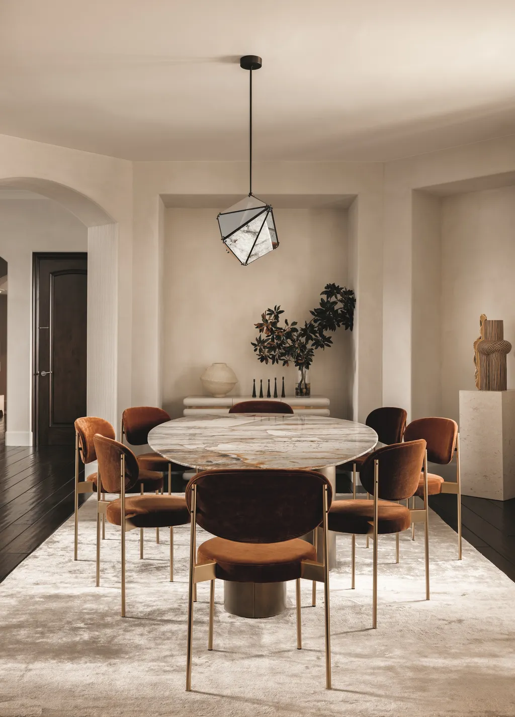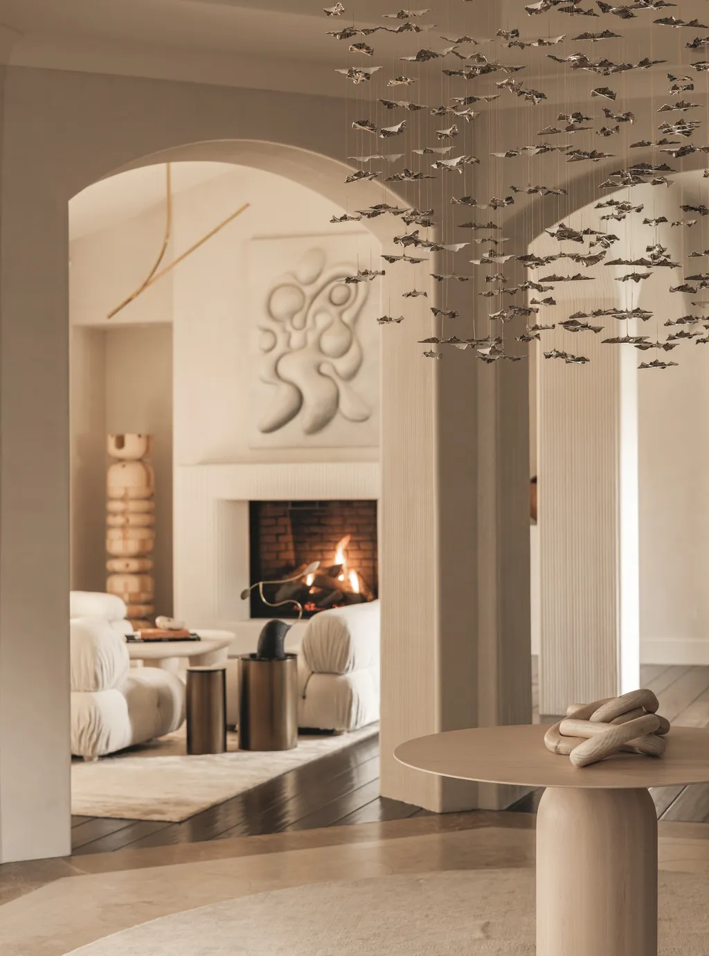 Το brief ήταν ξεκάθαρο: να σχεδιαστεί ένας κομψός, εκλεπτυσμένος εσωτερικός χώρος που όχι μόνο θα αντανακλούσε τα απαιτητικά γούστα των πελατών, αλλά θα παρείχε και ένα ασφαλές και φιλόξενο περιβάλλον για τα παιδιά τους. Τα μαλακά, στρογγυλεμένα έπιπλα, τα μοναδικά φωτιστικά και μια απαλή χρωματική παλέτα ήταν προτεραιότητες. Έχοντας συνεργαστεί με την οικογένεια στο παρελθόν, η Huma κατανόησε τις προτιμήσεις και το όραμά τους, ενώ παράλληλα μπορούσε να δημιουργήσει έναν χώρο που θα γιόρταζε την ξεχωριστή υλικότητα και τη γλυπτική μορφή.