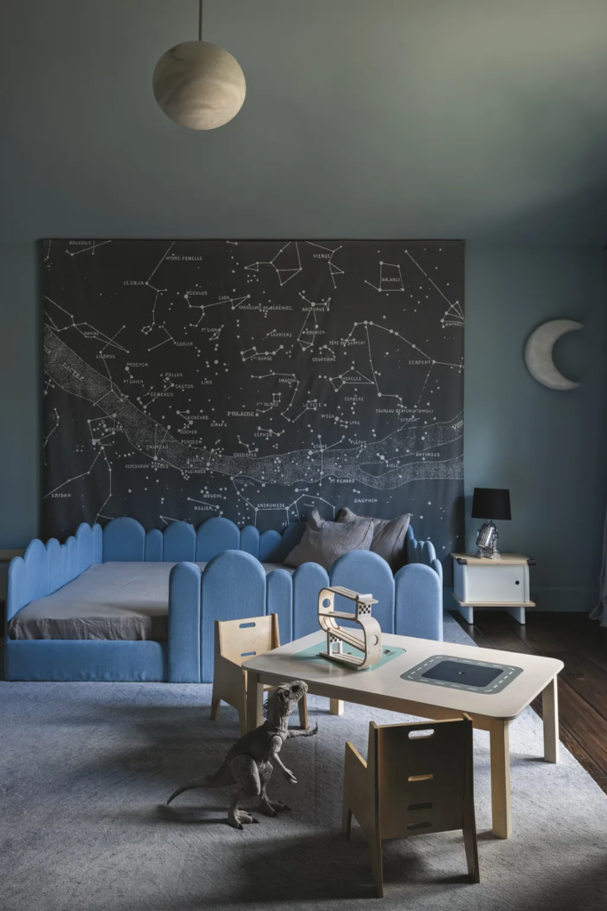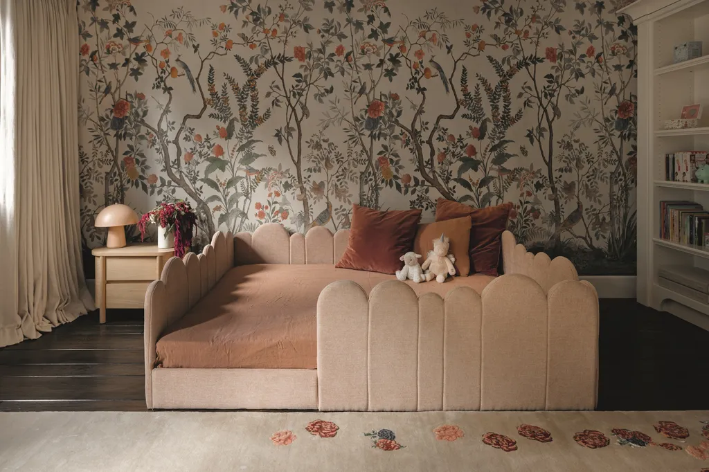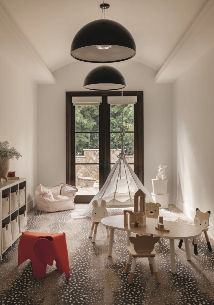 «Προτιμήσαμε υφάσματα υψηλής ποιότητας για ταπετσαρίες, καθώς μπορούσαν να αντέξουν τις αναπόφευκτες διαρροές και τις ατυχίες της οικογενειακής ζωής», λέει. Οι πελάτες ζήτησαν από την Huma να προμηθευτεί έπιπλα που είχαν απαλές άκρες και ήταν ασφαλή για τα μικρά παιδιά τους να παίζουν. «Φυσικά, επιλέξαμε κομμάτια που είναι στρογγυλεμένα και χαμηλά σε ύψος, καθώς και βελούδινα υλικά, τα οποία όλα προσφέρουν άνεση και καλωσορίζουν κάποιον στον χώρο».