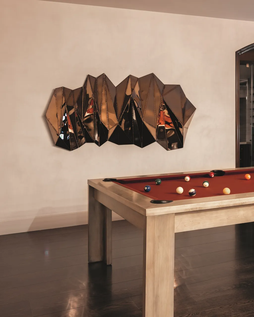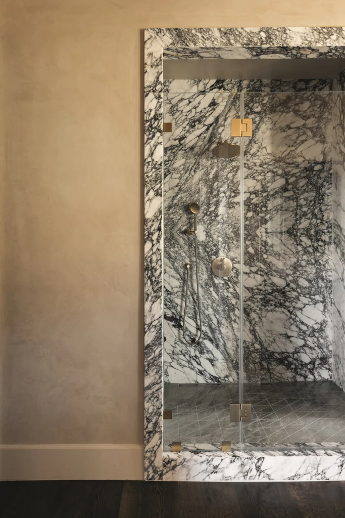 Μία από τις πιο σημαντικές προκλήσεις στην ανακαίνιση ήταν μια σειρά από κλασικούς πυλώνες που κυριαρχούσαν στους κύριους χώρους διαβίωσης και στο φουαγιέ. Αυτά τα δομικά στοιχεία συγκρούονταν με τη μοντέρνα αισθητική των πελατών. Η λύση της Huma ήταν καινοτόμος και μεταμορφωτική, καθιστώντας τους ένα πρωταγωνιστικό χαρακτηριστικό. «Επενδύσαμε τους πυλώνες με ξύλινες σανίδες, τους δώσαμε ορθογώνιο σχήμα και τους ολοκληρώσαμε με σοβά με μια κεκλιμένη ή ραβδωτή εμφάνιση» εξηγεί η Huma. «Αυτό που κάποτε ήταν αντιαισθητικό έχει γίνει η πιο αξιοθαύμαστη αρχιτεκτονική λεπτομέρεια στην ανακαίνιση».