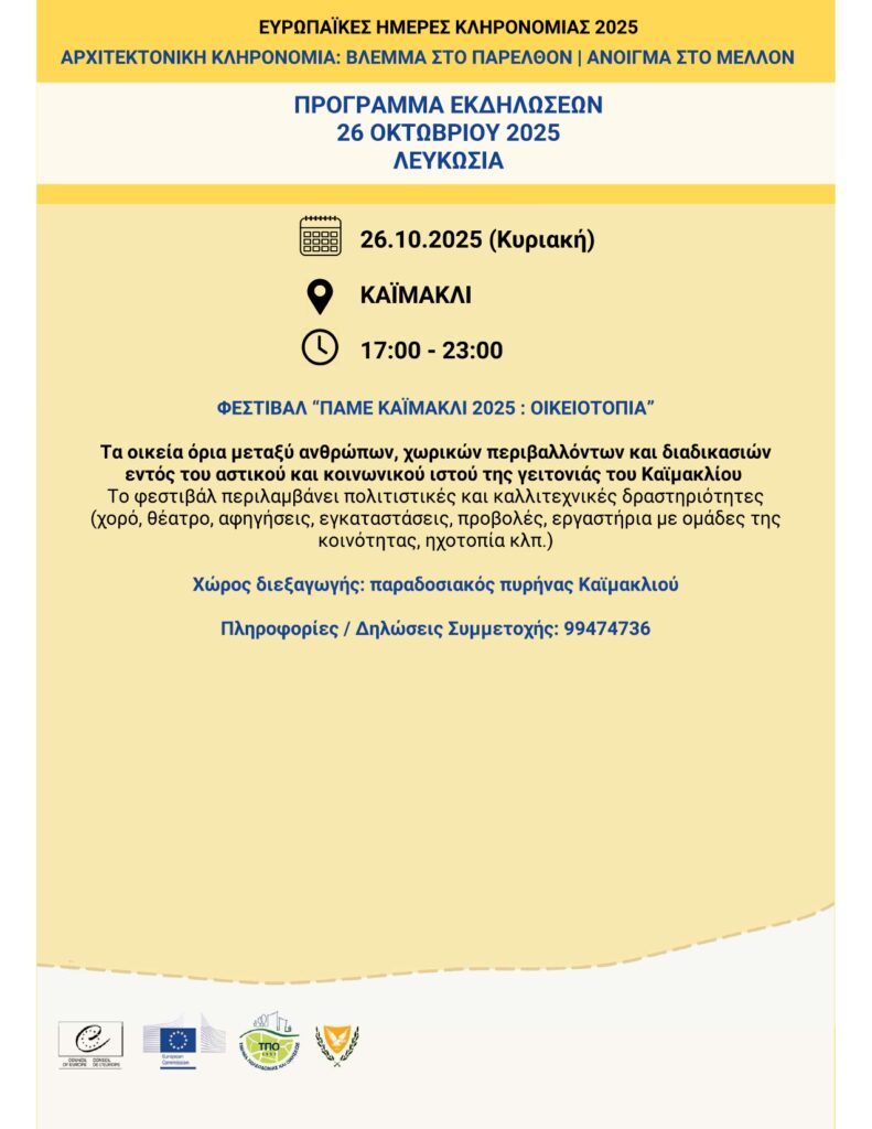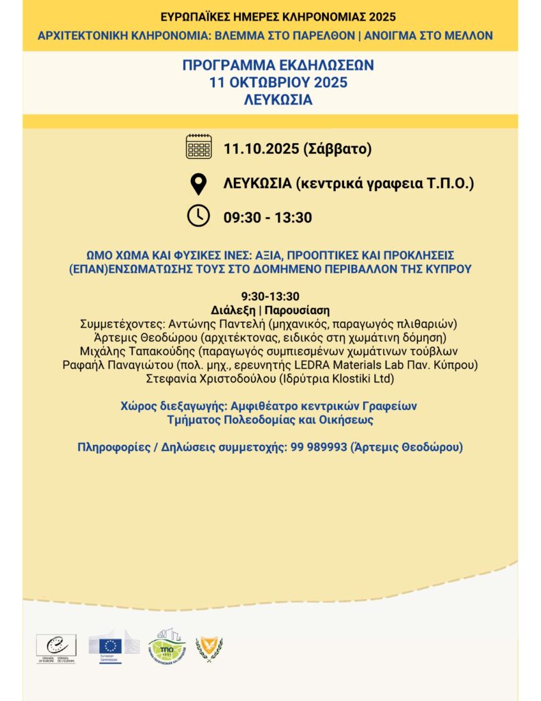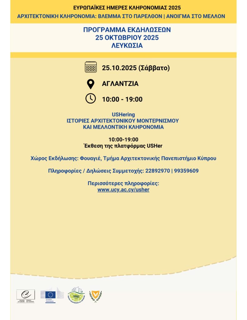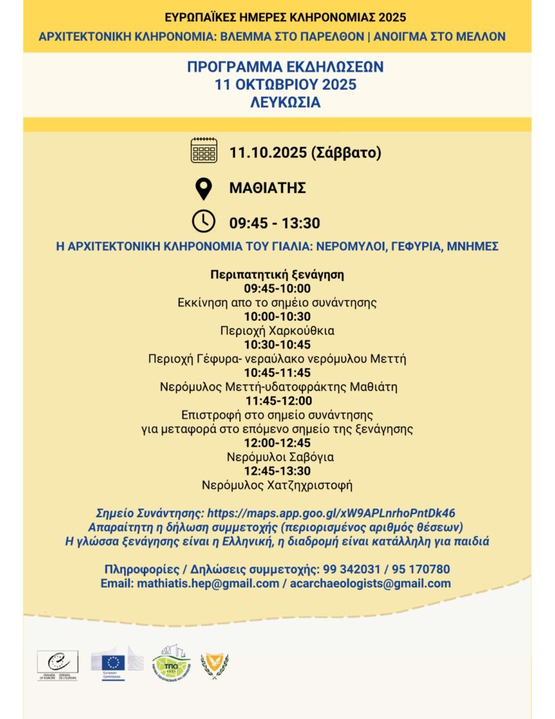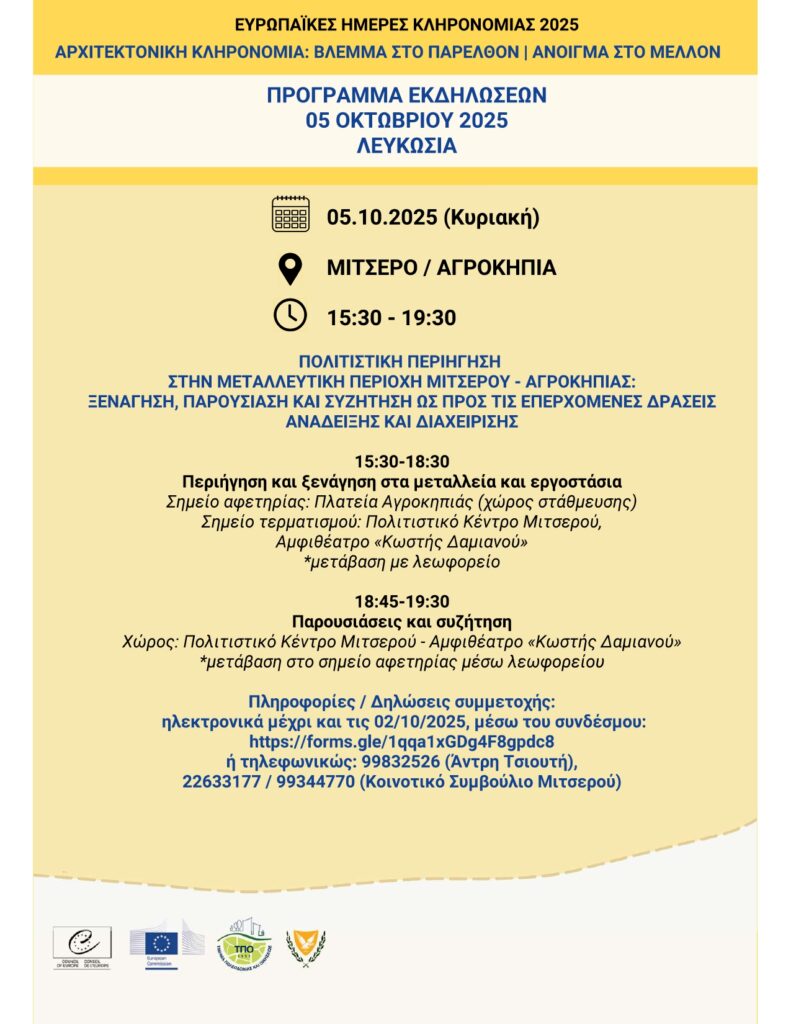εκδηλώσεων για τις «Ευρωπαϊκές Ημέρες Κληρονομιάς 2025», με ειδικό θέμα «Αρχιτεκτονική