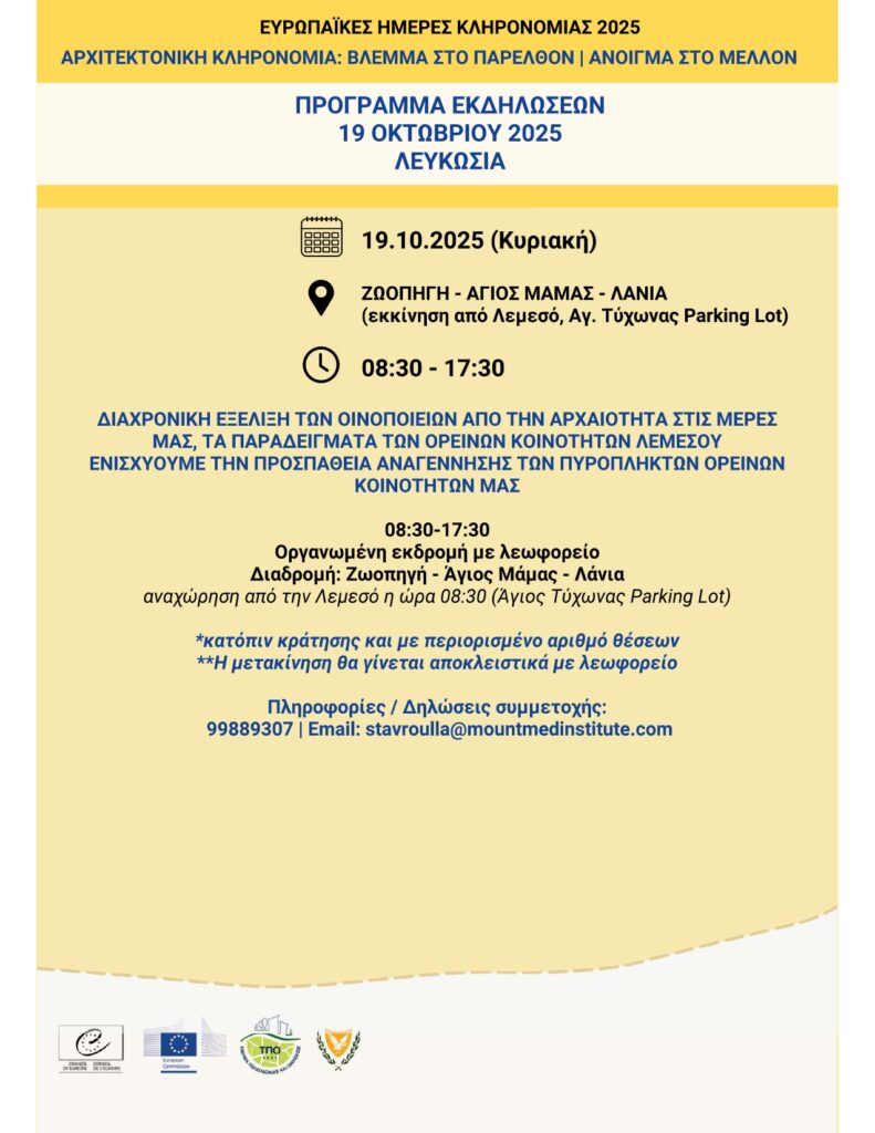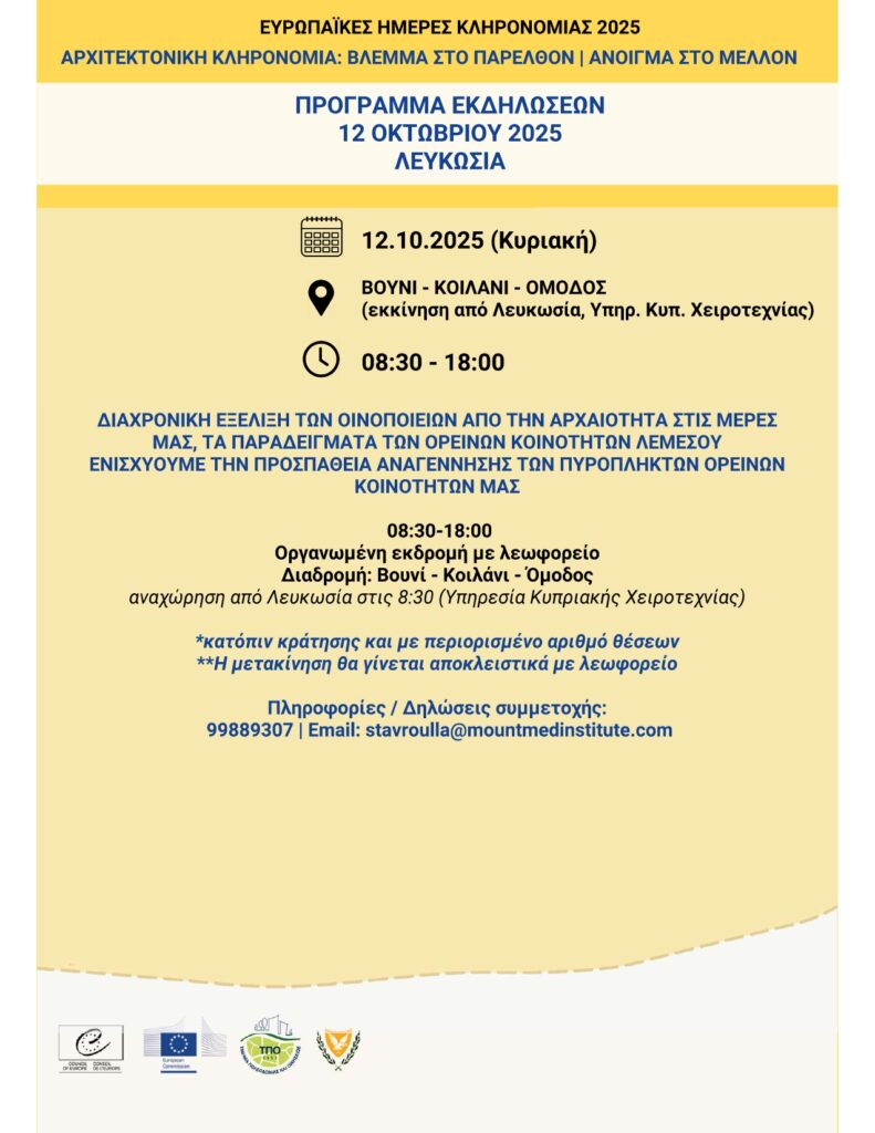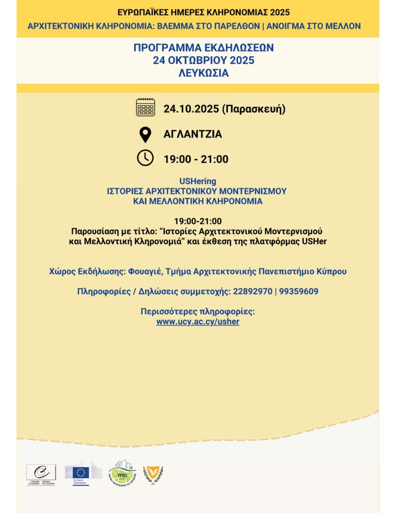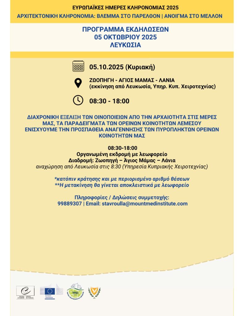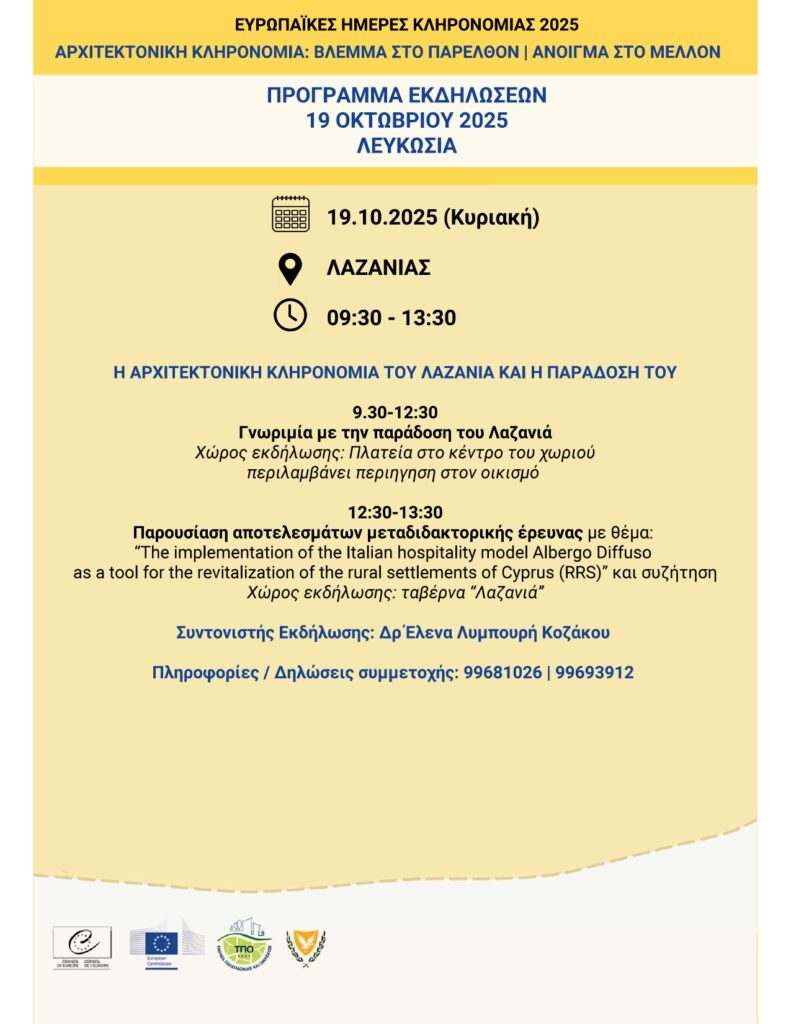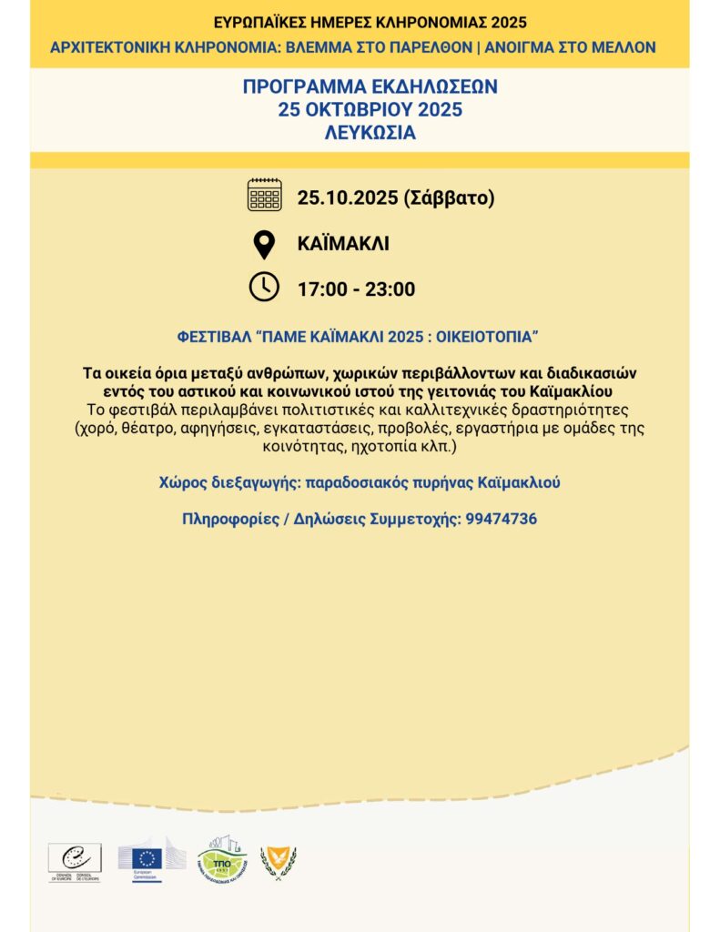 εκδηλώσεων για τις «Ευρωπαϊκές Ημέρες Κληρονομιάς 2025», με ειδικό θέμα «Αρχιτεκτονική