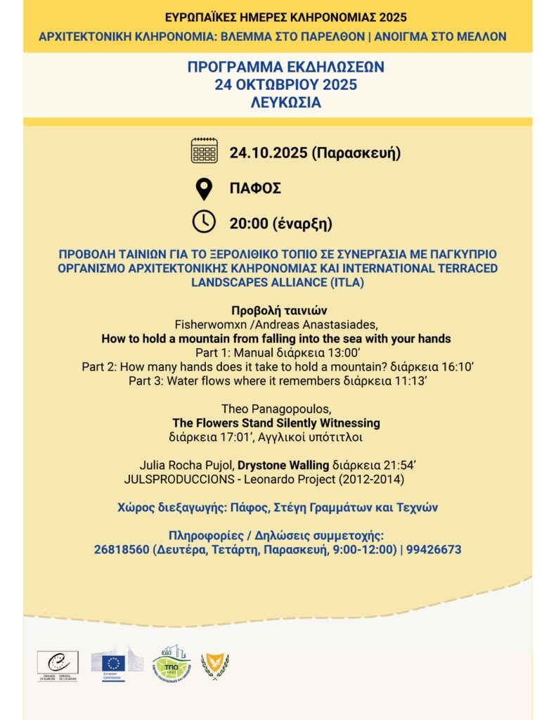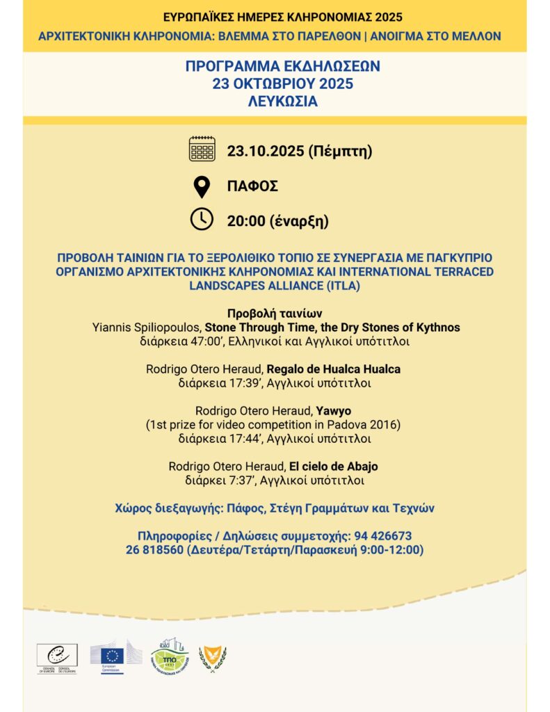 προβολές ταινιών με έμφαση στην Αρχιτεκτονική κληρονομιά της αστικής και παραδοσιακής