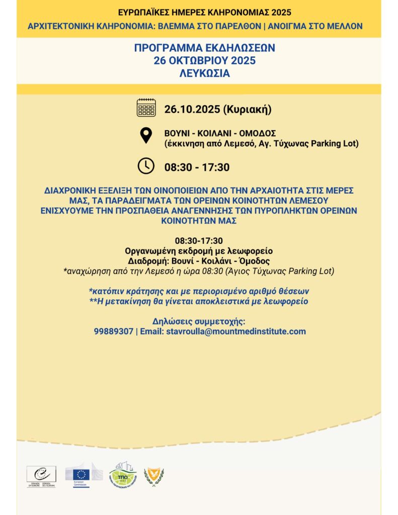 Ημερών Κληρονομιάς στην Κύπρο στο Facebook (European Heritage Days – Cyprus) και στην σελίδα
