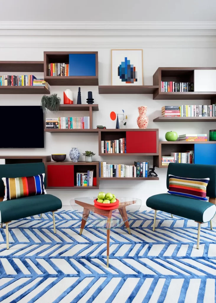 Αν ψάχνετε για μια πιο μόνιμη εναλλακτική λύση, σκεφτείτε ιδέες για ράφια στο σαλόνι. «Μια εγκατάσταση από το δάπεδο μέχρι την οροφή όχι μόνο προσθέτει αρχιτεκτονικό ενδιαφέρον, αλλά και επίπεδα ζεστασιάς, προσωπικότητας και λειτουργικότητας» λέει η σχεδιάστρια Elana Tenenbaum Cline, δημιουργική διευθύντρια στην Carta Creatives.
