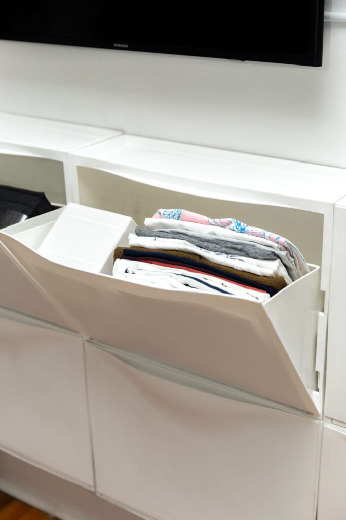 Το DIY για το οποίο είναι πιο περήφανη: Ο μόνος τρόπος για να λειτουργήσετε σε έναν χώρο σαν κι αυτόν είναι να γίνετε πραγματικά δημιουργικοί με το πώς και πού τοποθετούνται τα πράγματα. Τα εντοιχισμένα είναι φίλοι σας. Το να μάθετε πώς να μεγιστοποιείτε και να βρίσκετε ακριβώς αυτό που θα λειτουργήσει αξίζει τελικά τον κόπο. «Είναι μια διαδικασία. Δεν σου έρχονται όλα ταυτόχρονα. Αλλά ανακαλύπτεις χώρους καθώς προχωράς που μπορούν να χρησιμοποιηθούν για περισσότερα από όσα τους αποδίδονται».