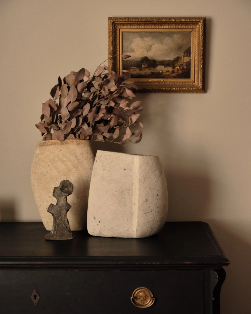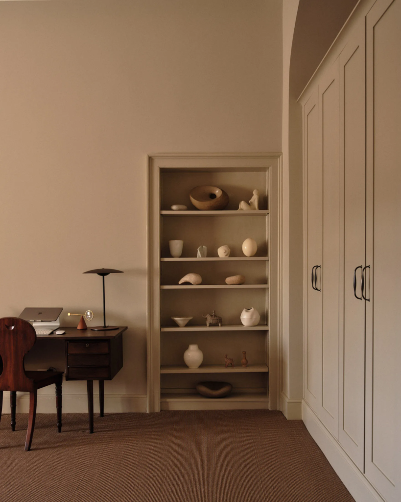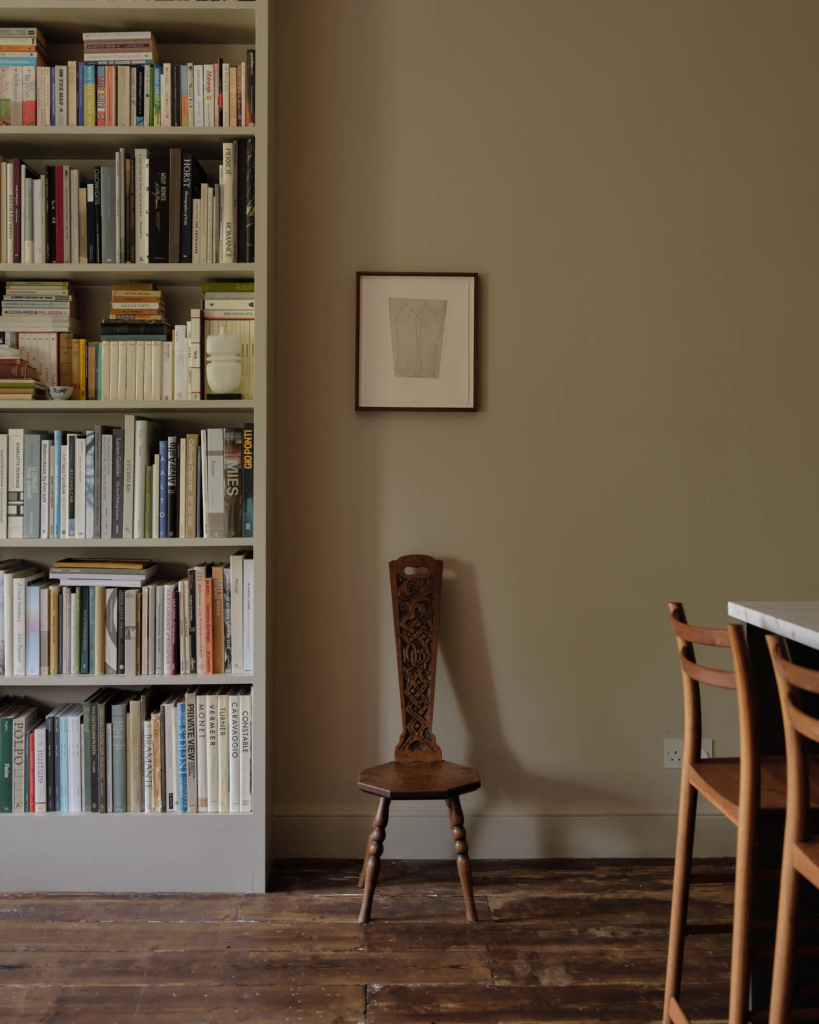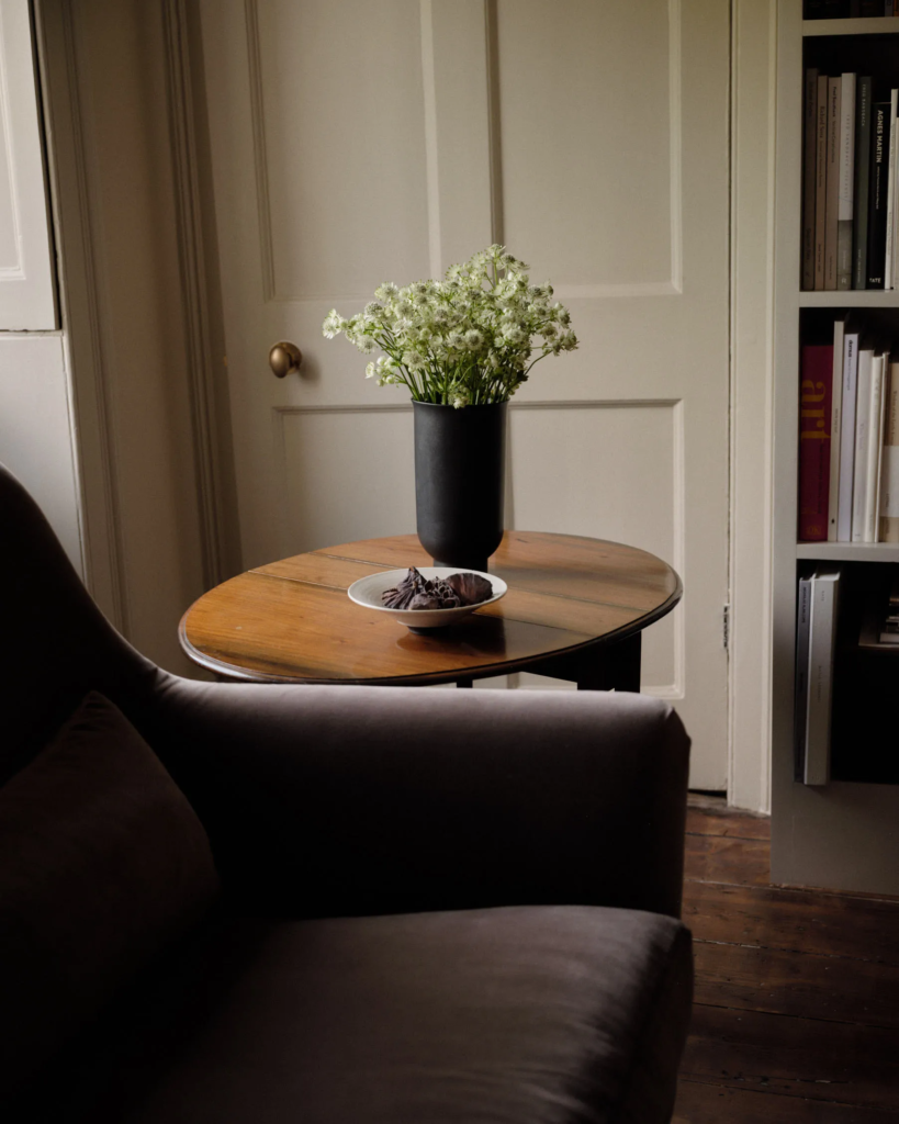 Το αποτέλεσμα είναι ένα συνεκτικό διακοσμητικό σχέδιο όπου τα πάντα – από την τέχνη μέχρι τα έπιπλα και τον φωτισμό – αντανακλούν την κοινή εκτίμηση του ζευγαριού για αυτοσυγκράτηση. «Κανείς από εμάς δεν είναι διακοσμητής εσωτερικών χώρων, αλλά είμαστε τυχεροί που η οπτική μας είναι ως επί το πλείστον ευθυγραμμισμένη» λέει. Ωστόσο, δεν υπάρχει ένας ψυχρός μινιμαλισμός σε αυτό το διαμέρισμα, αλλά ένας που μαλακώνεται από ζεστασιά και σύνδεση. «Η πρόκληση όταν αφήνεις άδειο χώρο είναι να αποφύγεις να τον κάνεις να φαίνεται ψυχρός. Νομίζω ότι το πετύχαμε αυτό εδώ προμηθεύοντας έργα τέχνης σταδιακά, συλλέγοντας αντικείμενα και βιβλία και τοποθετώντας τα με προσοχή» εξηγεί η Rosa. «Αυτά τα πράγματα χρειάζονται χρόνο».