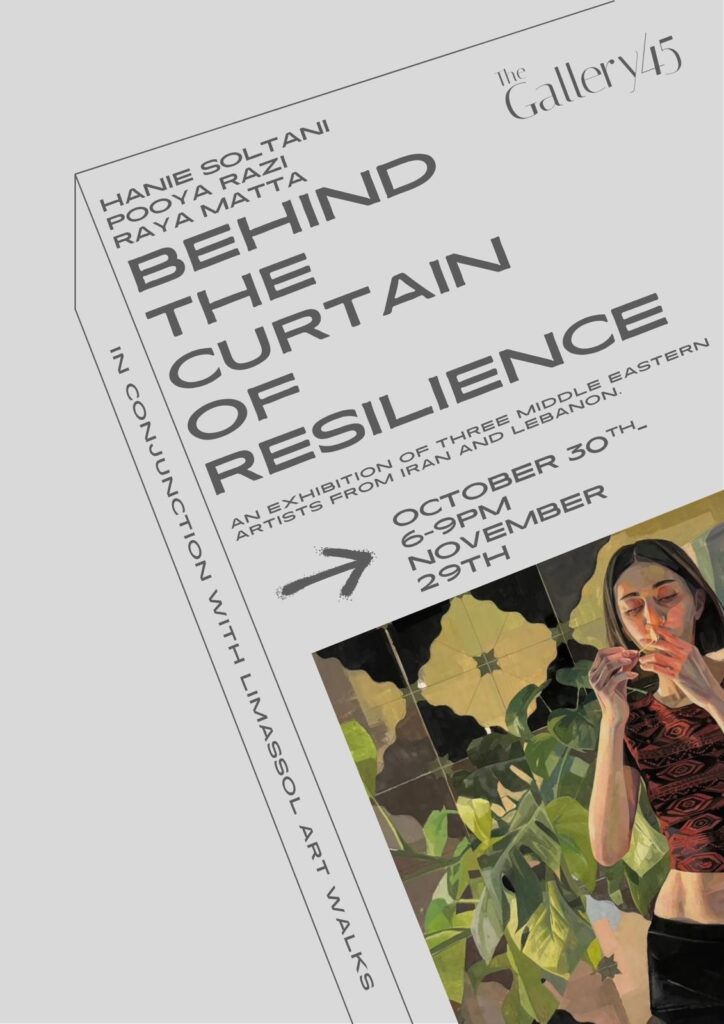 Με μεγάλη χαρά, το The Gallery 45 ανακοινώνει τα εγκαίνια της έκθεσης «Η Αυλαία πίσω από την Ανθεκτικότητα», η οποία διερευνά τις έννοιες του τραύματος και της ανθεκτικότητας μέσα από το βλέμμα σύγχρονων Ιρανών και Λιβανέζων καλλιτεχνών. Η εναρκτήρια εκδήλωση θα πραγματοποιηθεί την Πέμπτη 30 Οκτωβρίου, από 6:00 μ.μ. έως 9:00 μ.μ., ενώ η έκθεση θα διαρκέσει έως 29 Νοεμβρίου 2025.