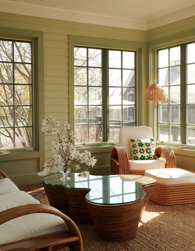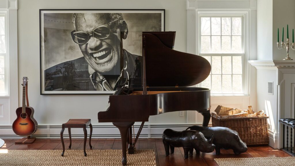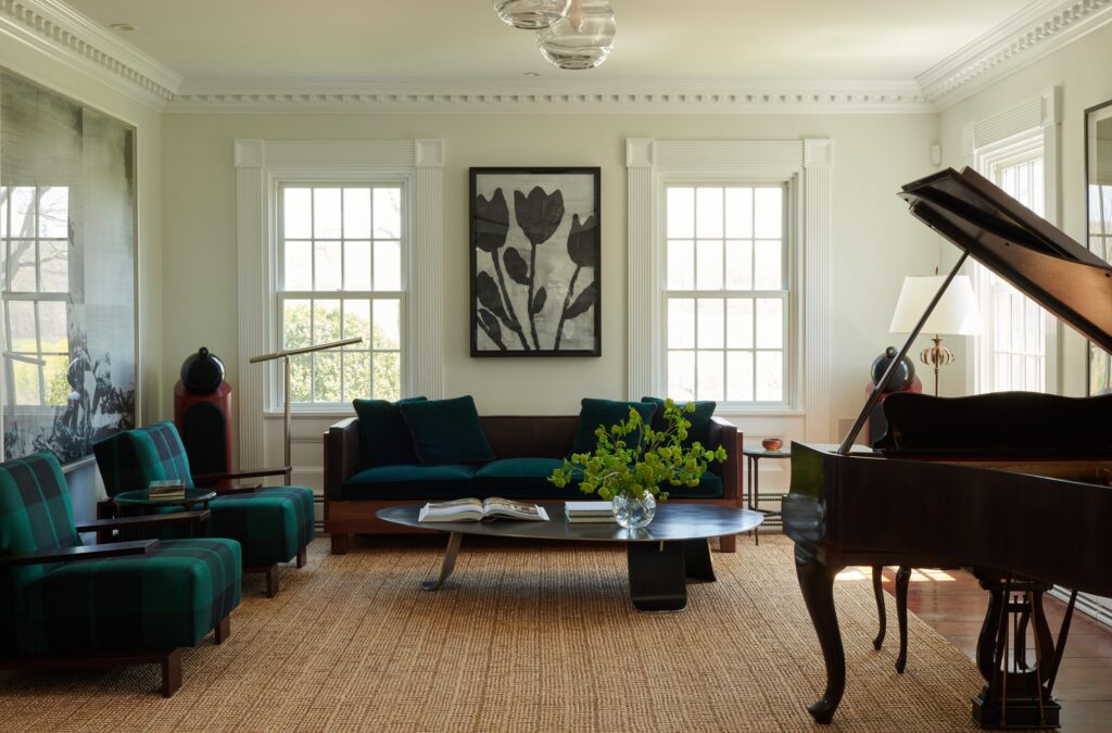 Προσωπικές πινελιές ενσωματώθηκαν σε όλους τους χώρος. Παλαιά εργαλεία αυτοκινήτου, κατασκευασμένα από τον παππού και τον προπάππου του πελάτη, κοσμούν το χολ εισόδου, τοποθετημένα σαν να βρίσκονται σε μουσείο. Ένα παραδοσιακό πιάνο Steinway από την οικογένεια της συζύγου δεσπόζει στο σαλόνι. Οι παλέτες αντανακλούν το αγαπημένο χρώμα του ιδιοκτήτη – το πράσινο – και οι χώροι σε όλο το χώρο εξυπηρετούν την απόλαυση και τη χαλάρωση. «Η Joy είναι εξαιρετικά οξυδερκής» λέει η πελάτισσα. Για την Moyler, το κλειδί για να ξεκλειδώσει ένα έργο σε αυτή την κλίμακα ήταν να το αντιμετωπίσει σαν θέρετρο, χωρίς ποτέ να χάσει από τα μάτια της το πραγματικό πρόσωπο πίσω από αυτό. «Έπρεπε να έχει τα πάντα και να είναι πλήρως λειτουργικό», λέει, «αλλά να είναι και σπίτι».
