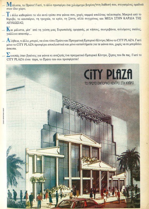 Οι παιδικές και εφηβικές αναμνήσεις των millennials είναι στενά συνδεδεμένες με το πρώτο mall που δημιουργήθηκε στη Λευκωσία. Το City Plaza με τα μαγαζάκια του και τις καφετέριές του υπήρξε στέκι και χώρος συνάντησης για πολλούς της γενιάς που το έζησε περισσότερο. Από το θρυλικό μέρος, πλέον, έχουν διασωθεί μόνο οι αναμνήσεις αφού παρά τις προσπάθειες δεν έγινε κατορθωτό να αναβιώσει τις ένδοξες στιγμές του και παραμένει έρημο με μόνο ένα-δύο μαγαζιά να εξακολουθούν να λειτουργούν μέχρι σήμερα.
