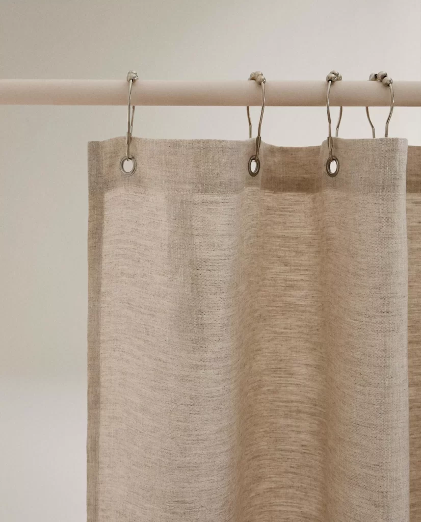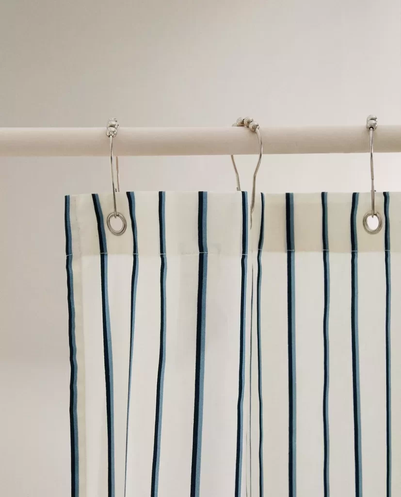 Extra: Αναβαθμίστε την μπανιέρα ή την ντουζιέρα σας με μια υφασμάτινη κουρτίνα, φροντίζοντας πάντα (αν δεν είναι κατασκευασμένη για αυτόν τον σκοπό) να την τοποθετείτε διπλή με μια απλή διαφανή κουρτίνα μπάνιου στο εσωτερικό για να αποφεύγεται η δημιουργία μούχλας και η φθορά από το νερό.