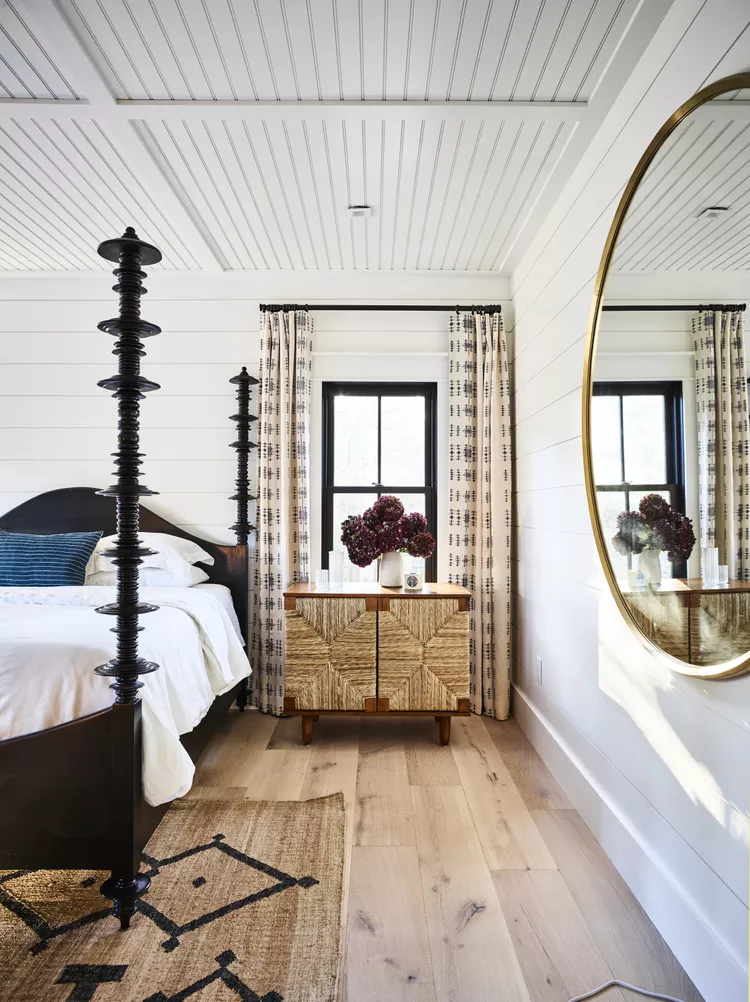 Ο πιο αποτελεσματικός τρόπος για να προσδώσετε οπτική έκταση σε ένα μικρό υπνοδωμάτιο είναι χρησιμοποιώντας γραμμές. «Οι επενδύσεις δαπέδου και τοίχου με ρίγες, για παράδειγμα – κάθετες, οριζόντιες και ιδιαίτερα διαγώνιες, ή οργανικής κίνησης – διαταράσσουν την αίσθηση στένωσης που μπορεί να προκαλεί σε ορισμένους το στενό» λέει ο Miller.