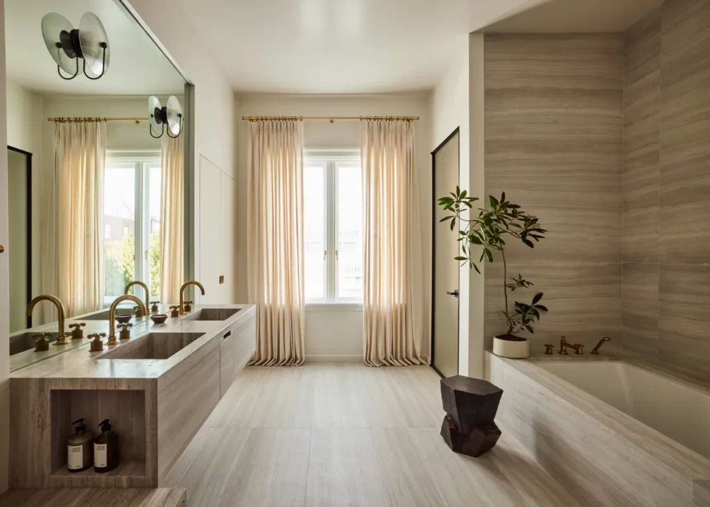 «Η τραβερτίνη ταιριάζει σχεδόν οπουδήποτε, από μπάνια εμπνευσμένα από σπα και γαλήνιους χώρους διαβίωσης, μέχρι εξωτερικές βεράντες ή τραπεζαρίες», λέει η Urvashi. Όπως σημειώνει, προσφέρεται ιδιαίτερα σε χώρους όπου η δημιουργία μιας χαλαρωτικής ατμόσφαιρας αποτελεί ύψιστη προτεραιότητα και θα φαινόταν ιδιαίτερα εντυπωσιακή στα μοντέρνα δωμάτια ευεξίας που φαίνεται να εμφανίζονται όλο και περισσότερο.