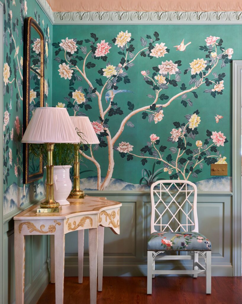 Για τον εσωτερικό χώρο, ο σχεδιαστής εφάρμοσε διάφορες υφές και έντονα μοτίβα, συνδυάζοντάς τα με χαρακτηριστικά γνωρίσματα του μεγαλοπρεπούς στυλ της Φλόριντα, όπως λουλουδάτες ταπετσαρίες, χρυσές λεπτομέρειες, περίπλοκα διακοσμητικά, μοτίβα με φοίνικες, ταπετσαρίες με κυπαρίσσια και μια χρωματική παλέτα σε παράκτιο στυλ.