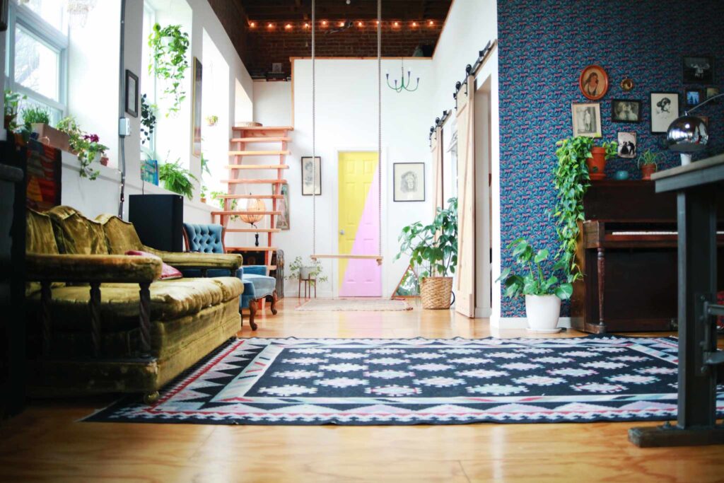 Το αγαπημένο DIY: «Ολόκληρο το loft. Όταν βρήκα τον χώρο, ήταν απλώς ένα μεγάλο, ανοιχτό, ορθογώνιο στούντιο. Σχεδίασα και κατασκεύασα τη διαρρύθμιση (τα τρία δωμάτια του κάτω ορόφου, το εσωτερικό μπαλκόνι του επάνω ορόφου, τις συρόμενες πόρτες, τη σκάλα, την κούνια κ.λπ.)».