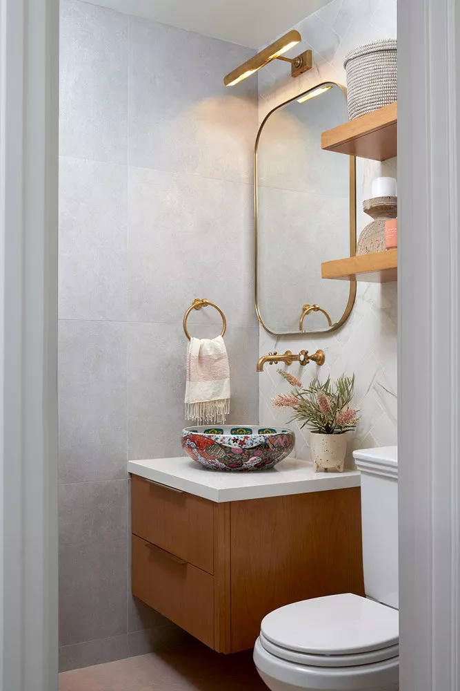 «Για μικρά μπάνια με μόνο έναν νιπτήρα με βάθρο, θα συνιστούσα ένα επιτοίχιο ντουλάπι πάνω από την τουαλέτα, καθώς αυτός είναι ο πιο υποχρησιμοποιημένος χώρος σε ένα μπάνιο» λέει η Shamika Lynch, ιδρύτρια του στούντιο εσωτερικής διακόσμησης μικρών χώρων Maximizing Tiny.
