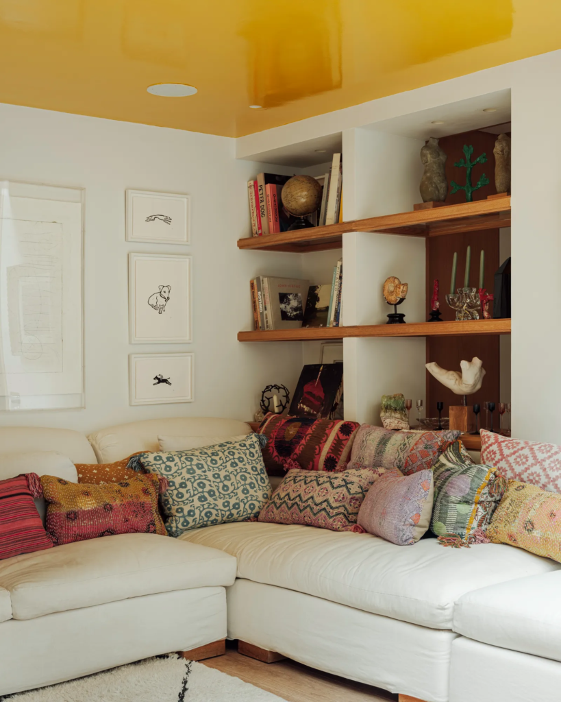 Η Suzy αντιστάθηκε στην επιθυμία να φτιάξει την τυπική ανοιχτή κουζίνα στο υπόγειο, και αντ’ αυτού επέλεξε περισσότερους χώρους σαν ”φωλιές” – μια κομψή κουζίνα στο μπροστινό μέρος του σπιτιού και ένα καθιστικό στο πίσω μέρος με μια χαρούμενη κίτρινη οροφή. Λιτά υπνοδωμάτια καταλαμβάνουν τον πρώτο και τον δεύτερο όροφο, ενώ στον επάνω όροφο του σπιτιού υπάρχει ένα άλλο καθιστικό όπου το φως μπαίνει από τεράστια παράθυρα και το οποίο οι ενήλικοι γιοι της χρησιμοποιούν τώρα ως φωλιά.
