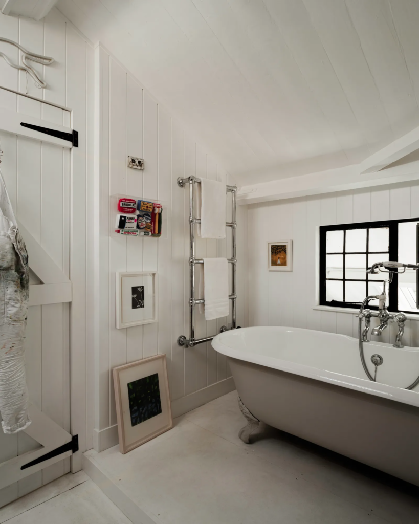 Είναι ένας μικρός χώρος, αλλά εντυπωσιακός: ο κύριος χώρος διπλού ύψους έχει δοθεί σε καμβάδες και τραπέζια εργασίας, με το φως της ημέρας να πλημμυρίζει από τους φεγγίτες, ενώ ο ημιώροφος από πάνω φιλοξενεί ένα υπνοδωμάτιο και ένα μπάνιο με πολυτελή έπιπλα.