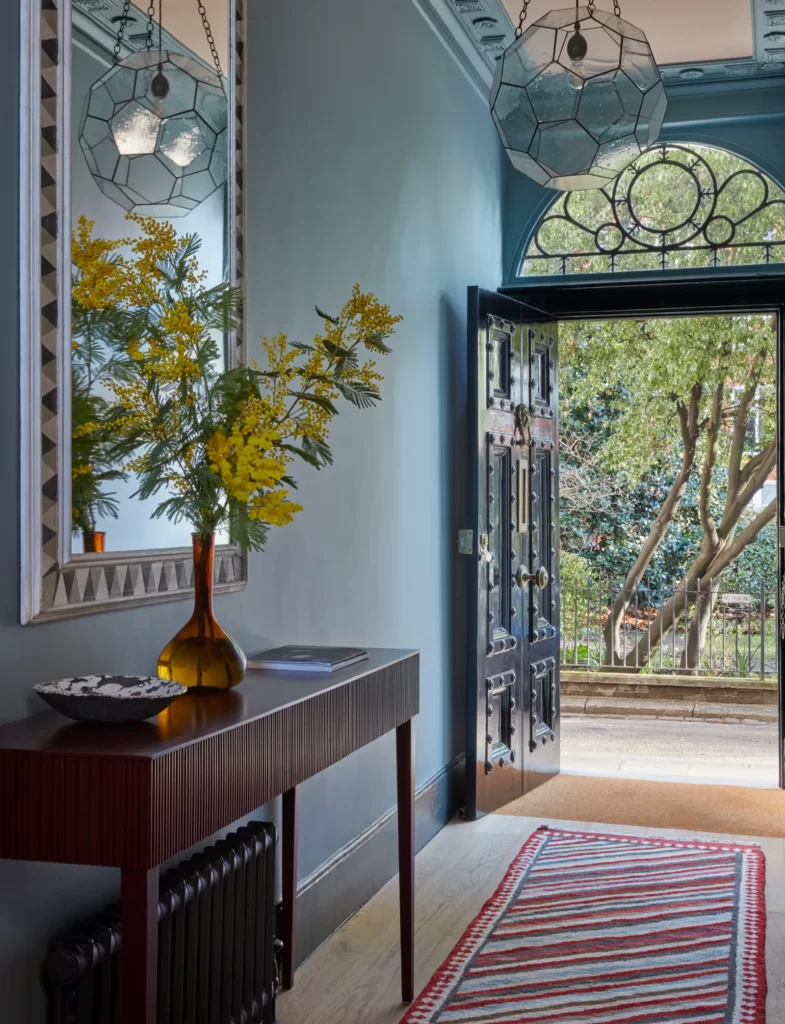 Αυτό το σπίτι στο Κένσινγκτον από την Kate Guinness είναι ένα μάθημα κομψότητας και ισορροπίας. Το ραβδωτό τραπέζι κονσόλας είναι ένα κομψό, γλυπτό στοιχείο στο διάδρομο. Για να μην φαίνονται τα πράγματα πολύ σοβαρά, η Kate συνδύασε το τραπέζι κονσόλας με ένα χαρούμενο runner και ένα κεχριμπαρένιο γυάλινο βάζο.