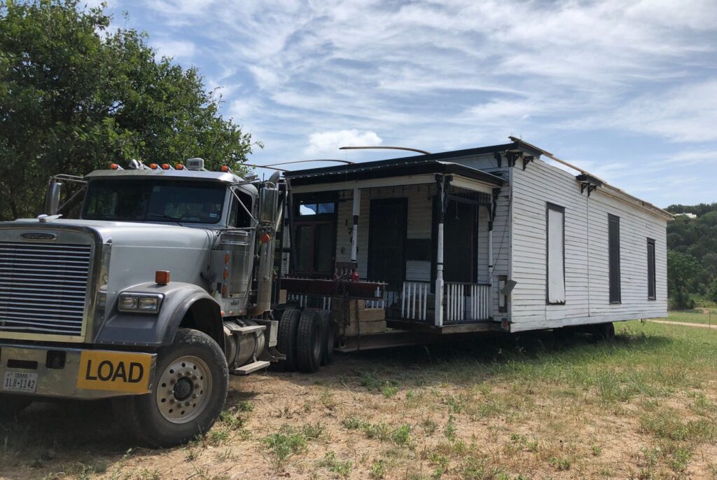 Η μετακίνηση του σπιτιού από την αρχική του θέση στο κέντρο του Ώστιν απαιτούσε την κοπή της κατασκευής στη μέση και την οδήγηση δύο 18τροχων φορτηγών με συνοδεία αστυνομικού. Ενώ το αποτύπωμα του σπιτιού παρέμεινε σε μεγάλο βαθμό το ίδιο, κάθε δωμάτιο χρειαζόταν σοβαρή προσοχή, οπότε ξεκίνησαν να απογυμνώνουν και να ανακατασκευάζουν ολόκληρους τοίχους, πατώματα και διακοσμητικά, αντικαθιστώντας και μετακινώντας παράθυρα και αποκαθιστώντας παλιές πόρτες. «Έχω δοκιμάσει σχεδόν κάθε τεχνική αφαίρεσης χρώματος που υπάρχει και καμία από αυτές δεν είναι διασκεδαστική» λέει η Claire.