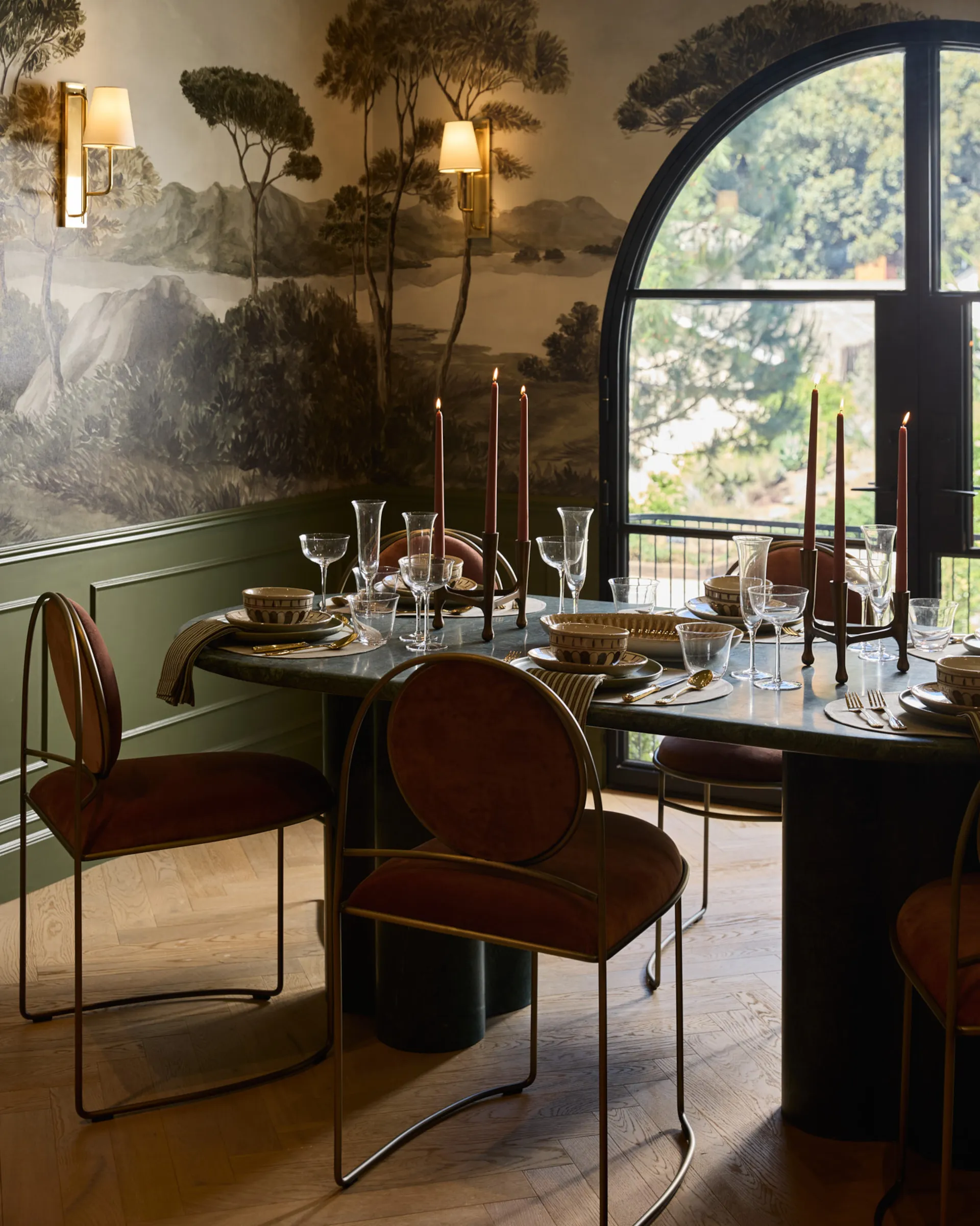Ξεκίνησε δημιουργώντας ένα φουαγιέ, αφού αρχικά άνοιγε απότομα στον χώρο διαβίωσης, και κατ’ επέκταση μια νέα ”πρώτη εντύπωση”. Με μαρμάρινα πλακάκια σκακιέρα και τοξωτές πόρτες, δίνει στους επισκέπτες μια γεύση από το τι πρόκειται να ακολουθήσει. «Θέλαμε λίγο κασμίρ. Θέλαμε μοχέρ. Θέλαμε πολύ μάρμαρο. Θέλαμε ορείχαλκο. Θέλαμε διακοσμητικά στοιχεία» λέει η Νίνα. «Θέλαμε πράγματα που πραγματικά αναβαθμίζουν έναν χώρο».