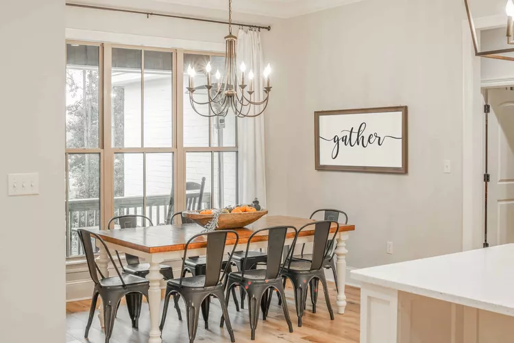 Εάν το νέο σας σπίτι δεν διαθέτει επίσημη τραπεζαρία ή σκοπεύετε να κάνετε την τραπεζαρία έναν ευέλικτο χώρο για άλλες δραστηριότητες, σκεφτείτε να αγοράσετε κατάλληλα έπιπλα και αξεσουάρ για να δημιουργήσετε έναν χώρο τραπεζαρίας μέσα στην κουζίνα.