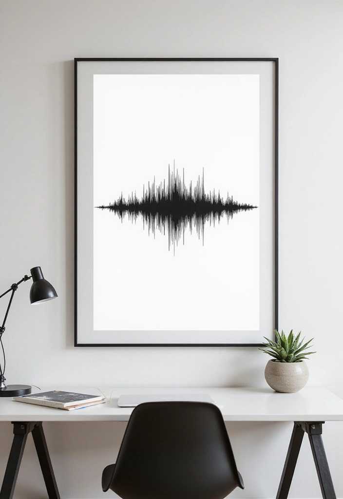 Αυτή η ιδέα διακόσμησης παρουσιάζει οπτικές ερμηνείες των αγαπημένων σας τραγουδιών σε κομψά, μινιμαλιστικά σχέδια. Μπορείτε εύκολα να βρείτε προσαρμοσμένες εκτυπώσεις ηχητικών κυμάτων που αντηχούν στο μουσικό σας γούστο ή μπορείτε να δημιουργήσετε τα δικά σας μοναδικά κομμάτια χρησιμοποιώντας ηλεκτρονικές γεννήτριες ηχητικών κυμάτων. Για να βελτιώσετε την οπτική ελκυστικότητα, σκεφτείτε να πλαισιώσετε τις εκτυπώσεις σας με μινιμαλιστικές κορνίζες που συμπληρώνουν το έργο τέχνης χωρίς να το επισκιάζουν.