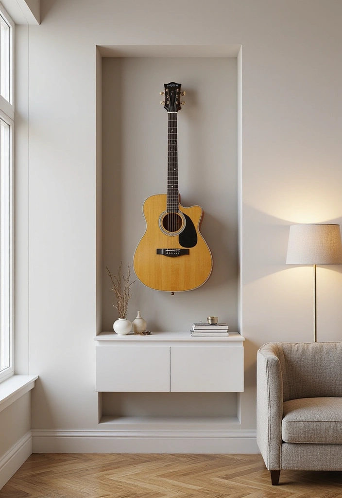 Γιατί να κρύβετε τα μουσικά σας όργανα όταν μπορούν να χρησιμεύσουν ως όμορφα διακοσμητικά κομμάτια; Σε ένα μινιμαλιστικό σπίτι, μια στρατηγικά τοποθετημένη κιθάρα, ένα γιουκαλίλι ή ακόμα και μια τρομπέτα μπορεί να μεταμορφωθεί σε ένα συναρπαστικό έργο τέχνης. Σκεφτείτε να χρησιμοποιήσετε επιτοίχιες κρεμάστρες κιθάρας για να εκθέσετε τις κιθάρες σας ή επιλέξτε κομψές βάσεις οργάνων, επιτρέποντας στα όργανα να λάμψουν από μόνα τους.