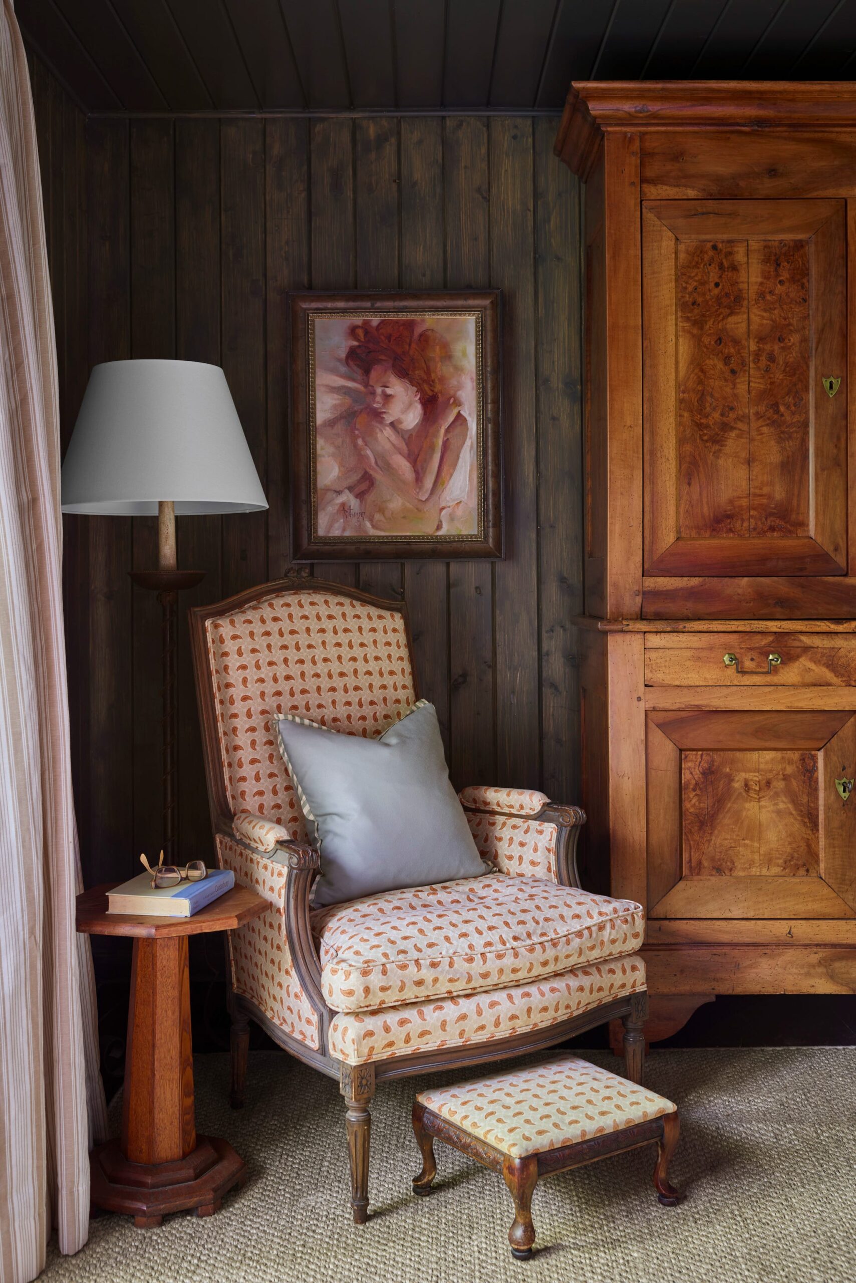 Ενώ η κουζίνα είναι καινούργια, η ατμόσφαιρα ολόκληρου του σπιτιού είναι ζωντανή. Σχεδόν όλα είναι vintage ή αντίκες. Η προηγούμενη ιδιοκτήτρια πούλησε το σπίτι επιπλωμένο και η Gilbreath κράτησε —και λατρεύει— πολλά από αυτά τα αντικείμενα, από το ρολόι του παππού μέχρι τα πυρίμαχα κεραμικά και τα καλάθια στο χολ εισόδου. «Το σπίτι έχει μια αίσθηση ιστορίας» λέει. «Νιώθεις σαν να έχεις κληρονομήσει το σπίτι της γιαγιάς σου. Το έχεις αγαπήσει και είσαι αρκετά τυχερός που είσαι ο παραλήπτης. Τιμά την κληρονομιά του».