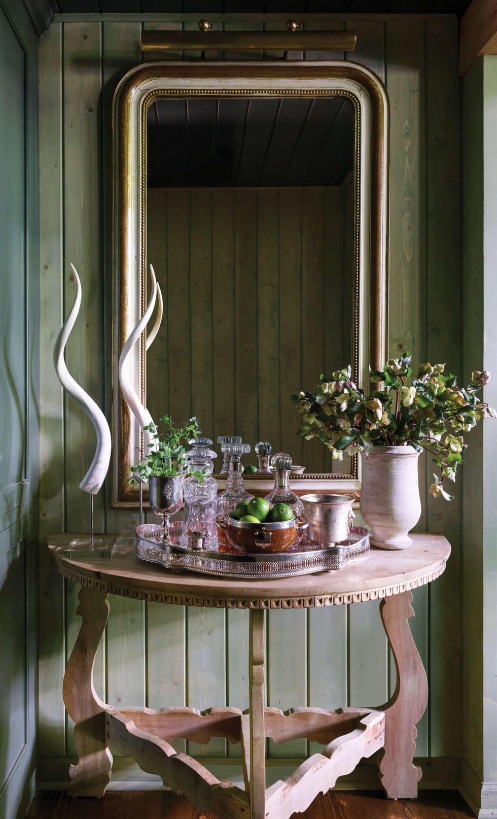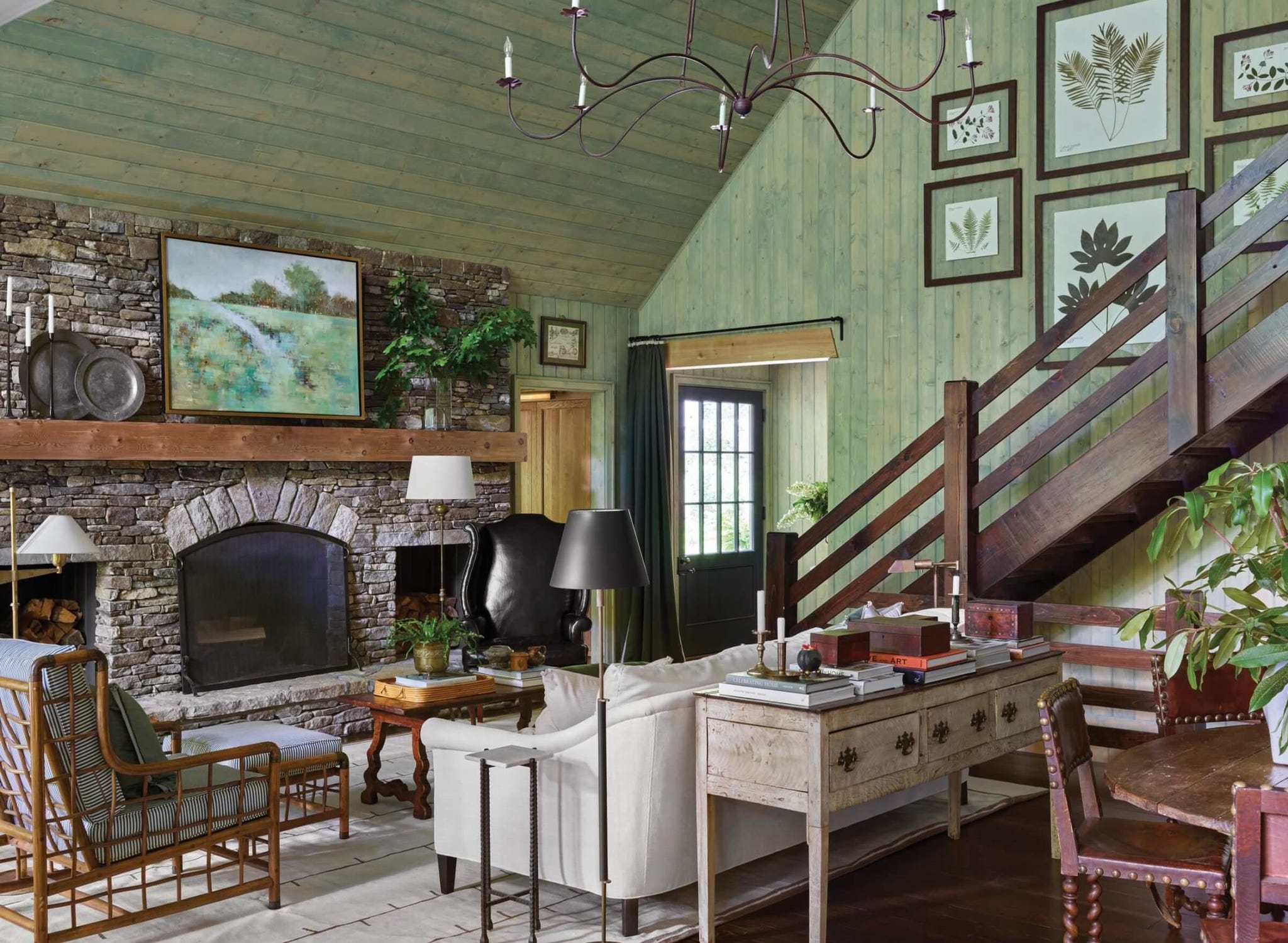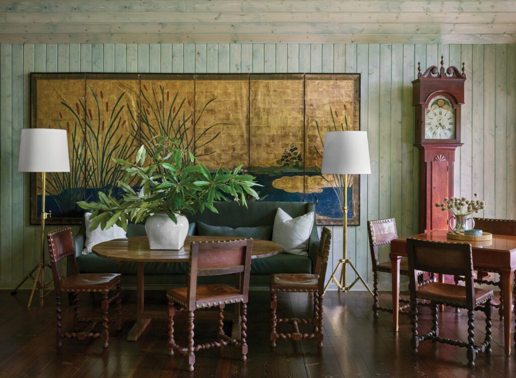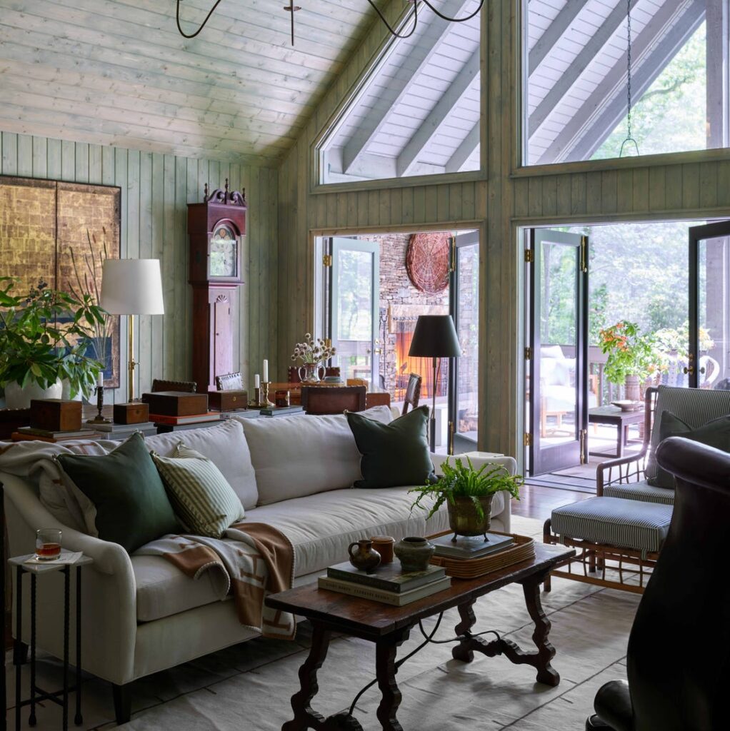 Ενώ πολλοί σχεδιαστές τείνουν να ακολουθούν ένα συγκεκριμένο -αλλά ποικίλο- χρωματικό συνδυασμό από δωμάτιο σε δωμάτιο, λίγοι πελάτες θα τους έδιναν carte blanche να ντύσουν έναν ολόκληρο χώρο στην ίδια απόχρωση του πράσινου. Ευτυχώς για την Ashley Gilbreath, ήταν πελάτισσα και σχεδιάστρια όσον αφορά στο εξοχικό που μοιράζεται με τον σύζυγό της, τα τρία παιδιά τους και τον σκύλο τους, Bo, στο Cashiers της Βόρειας Καρολίνας. Με άλλα λόγια, μπορούσε να κάνει κάθε δημιουργική απόφαση, ξεκινώντας από την παλέτα χρωμάτων.