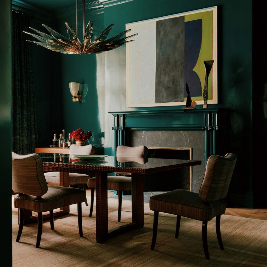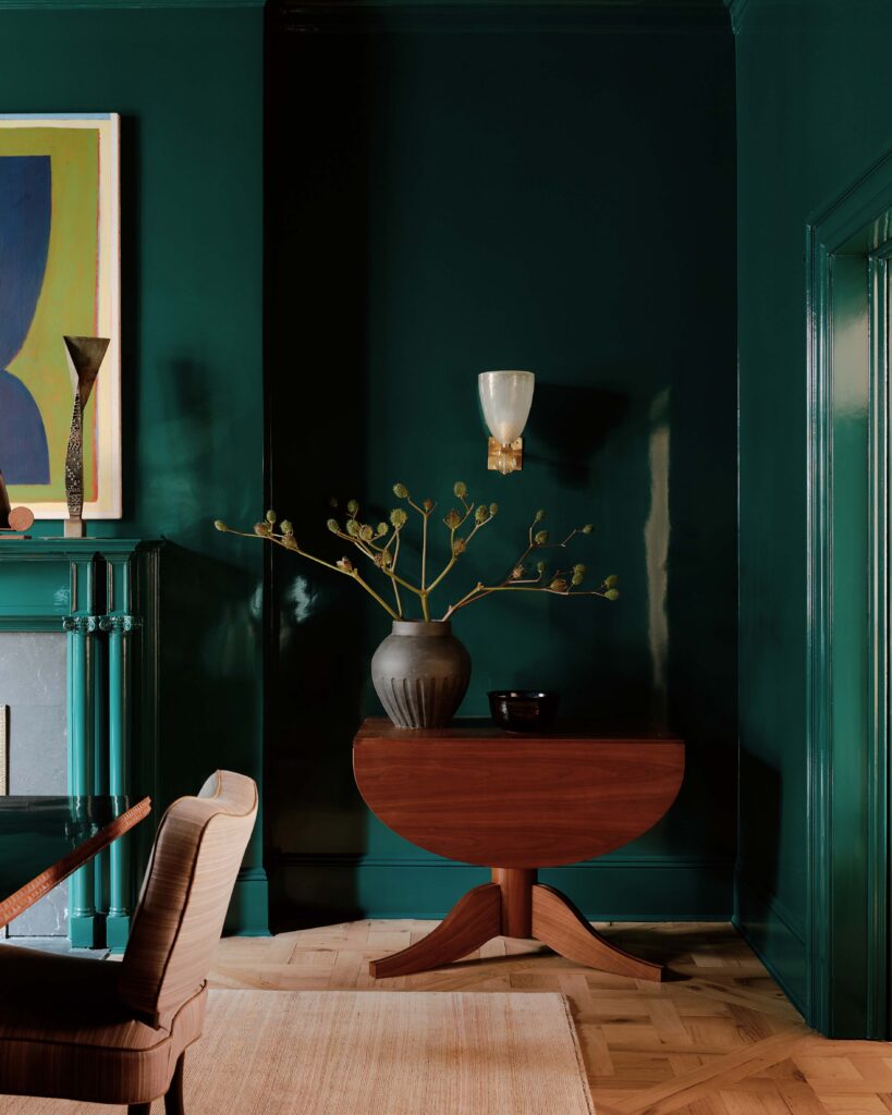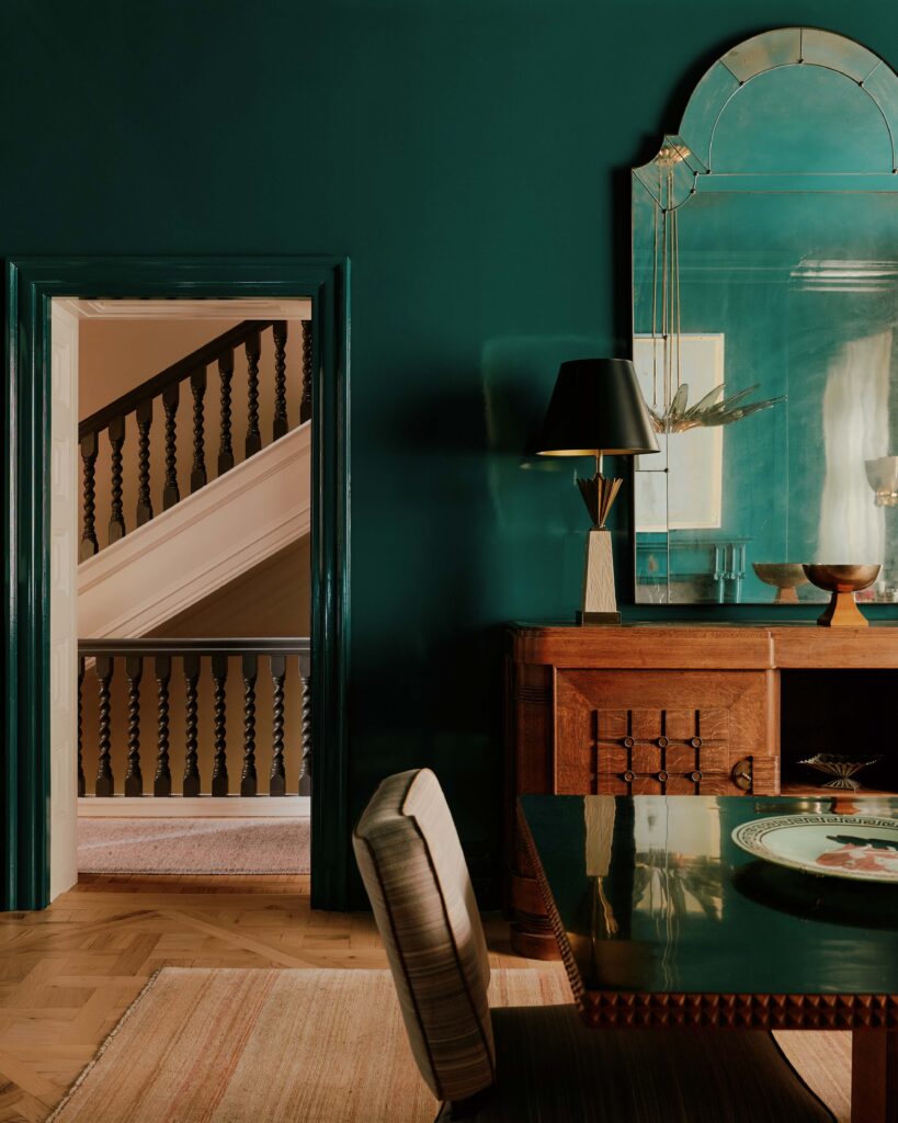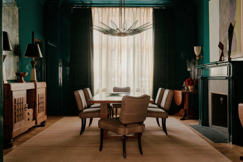 Το σμαραγδί χρώμα που επέλεξε για τους τοίχους (αφού εξέτασε αρκετά δείγματα) κατέληξε η έμπνευση για όλο το υπόλοιπο σπίτι. Όλα τα άλλα δωμάτια του σπιτιού βρίσκονται σε διάλογο με αυτόν τον εντυπωσιακό χώρο. «Η τραπεζαρία είναι το αστέρι του σπιτιού», λέει ο Chused. «Αυτό ήταν το πιο σημαντικό δωμάτιο».
