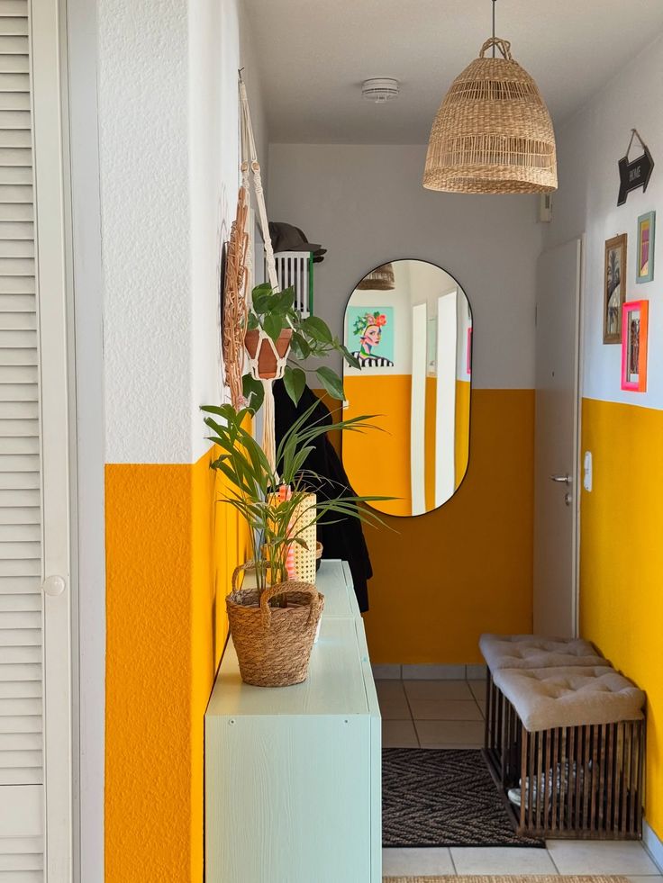 Υπάρχουν αρκετοί λόγοι για τους οποίους κάποιος μπορεί να επιλέξει να βάψει μόνο το κάτω μισό των τοίχων. Πρώτα απ’ όλα, η τεχνική αυτή δημιουργεί μια ενδιαφέρουσα οπτική ισορροπία. Ο διχρωματισμός «κόβει» το ύψος του τοίχου, δίνοντας στο δωμάτιο μια πιο δυναμική αίσθηση χωρίς να το φορτώνει. Αυτό είναι ιδιαίτερα χρήσιμο σε μικρούς χώρους, όπου οι έντονες, ολοκληρωμένες επιφάνειες μπορεί να γίνουν κουραστικές. Παράλληλα, το βάψιμο μόνο του κάτω τμήματος επιτρέπει την εισαγωγή χρώματος χωρίς το ρίσκο να σκοτεινιάσει υπερβολικά ο χώρος. Το πάνω μισό –συνήθως λευκό ή σε πολύ ανοιχτή απόχρωση– διατηρεί την αίσθηση φωτεινότητας, ενώ το κάτω μισό προσθέτει βάθος και χαρακτήρα. Έτσι, ακόμη και τα πιο τολμηρά χρώματα μπορούν να ενταχθούν αρμονικά στη διακόσμηση.