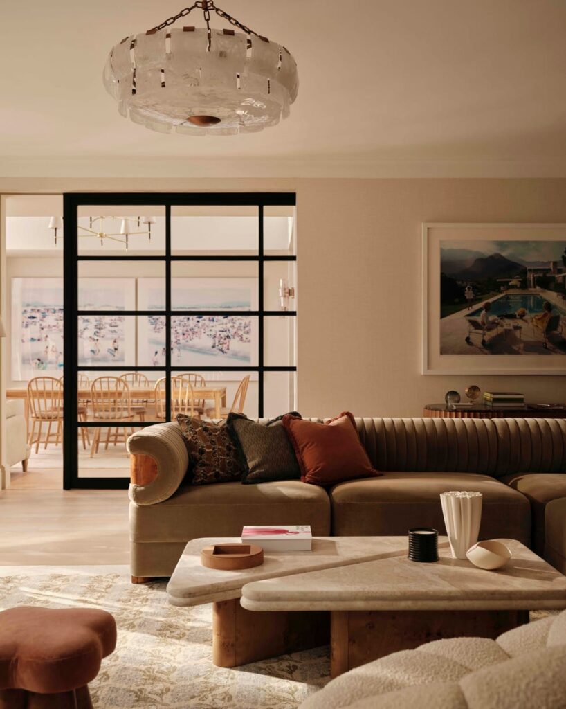 «Είναι όλα πολύ ζεστά και casual, αλλά και λαμπερά. Είναι θεατρικά, κάτι που υποθέτω ότι μου μοιάζει λίγο ως άτομο» εξηγεί, λέγοντάς πώς συνεργάστηκε με την διακοσμήτρια εσωτερικών χώρων Sophie Arquimbau, στην οποία αποδίδει την απορρόφηση της αισθητικής της και την ακριβή απόδοση της κλίμακας και της ευαισθησίας των επίπλων. Η Sophie πρότεινε απαλά χαλιά, κομψούς πολυελαίους και εντυπωσιακά κομμάτια, συμπεριλαμβανομένου ενός τεράστιου βελούδινου καναπέ – φτιαγμένου για να τον θαυμάζει κανείς από όλες τις γωνίες, στο κέντρο του μεγάλου επίσημου σαλονιού. «Όταν όλα ήρθαν, έκλαψα λίγο γιατί αυτή ήταν η πρώτη φορά που ήμουν μόνη γυναίκα, που βρισκόμουν σε δικό μου σπίτι» παραδέχεται. (Η Isla χώρισε από τον επί 14 χρόνια σύζυγό της Sacha Baron Cohen, πέρυσι).