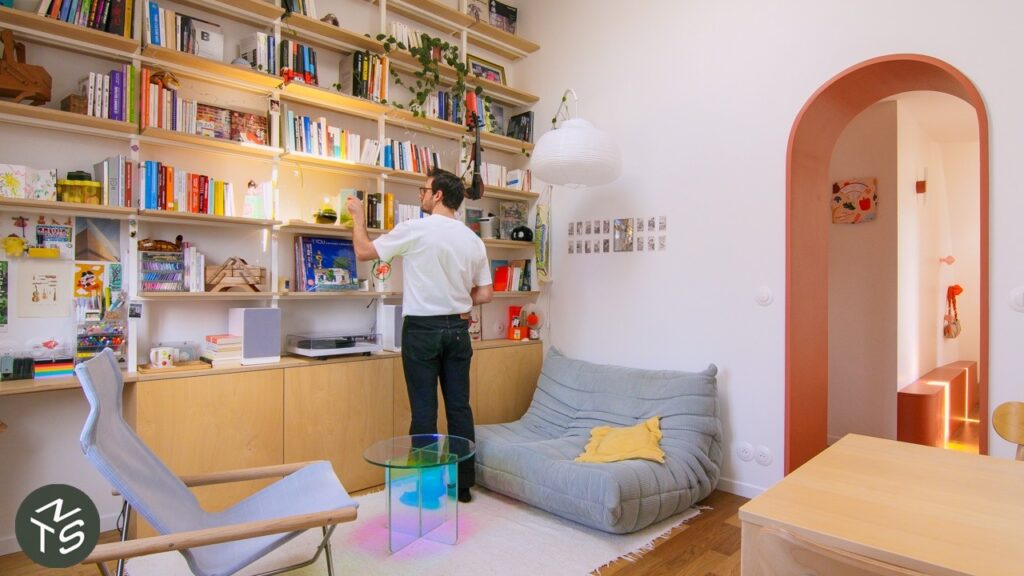 Το κάποτε στενόχωρο σπίτι των 40 τετραγωνικών μέτρων επανασχεδιάστηκε από τον Edouard Doria-Mafféïs, συνιδρυτή του δημιουργικού στούντιο Space Factory, ο οποίος εμπνεύστηκε από τις παιδικές αναμνήσεις των ιδιοκτητών στο νότο και την επιθυμία τους για ηρεμία στην πολύβουη πόλη. Εμπνευσμένη από τις ιαπωνικές αρχές του design, η ανακαίνιση αγκάλιασε φόρμες με καμπύλες, χαμηλά έπιπλα και μια απαλή, ουδέτερη παλέτα που διατηρεί τον χώρο ανοιχτό και ευάερο. Μια αψίδα από τερακότα σηματοδοτεί τη μετάβαση από τη λιτή είσοδο στον κύριο χώρο διαβίωσης.