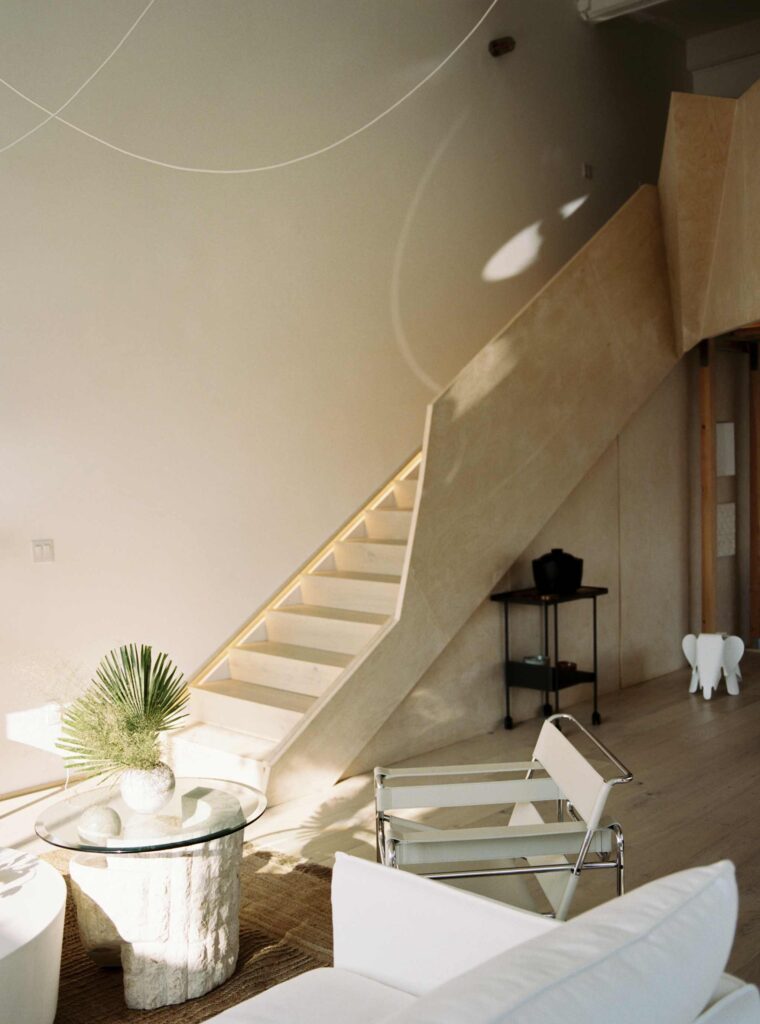Η μεγαλύτερη πρόκληση: «Με τα εσωτερικά μπαλκόνια, για να δημιουργηθεί διαχωρισμός, συνήθως απαιτείται η προσθήκη τοίχων. Δεν ήθελα να το κάνω αυτό, αλλά ήθελα κάθε χώρος να είναι εύκολα αναγνωρίσιμος. Ήθελα επίσης να αποφύγω να φαίνεται ακατάστατος, κάτι που συμβαίνει συχνότερα με τους χώρους σοφίτας. Η λύση σε αυτό ήταν ο σχεδιασμός πολλών έξυπνων λύσεων αποθήκευσης – έχουμε αποθηκευτικό χώρο παντού. Άφθονος αποθηκευτικός χώρος στην κουζίνα, ένας μεγάλος αποθηκευτικός χώρος κάτω από τις σκάλες, άφθονος αποθηκευτικός χώρος στο δωμάτιο επισκεπτών κ.λπ. Όλα τα μεμονωμένα αντικείμενα προσδίδουν σημασία στον χώρο, είτε με προφανή τρόπο (οπτικό) είτε με συγκαλυμμένο τρόπο (λευκά είδη ή απαλές υφές που υποδηλώνουν έναν ήρεμο χώρο για αισθητηριακή χαλάρωση), έτσι ώστε τίποτα να μην φωνάζει για προσοχή περισσότερο από το άλλο, επιτυγχάνοντας έτσι έναν συνεκτικό χώρο».