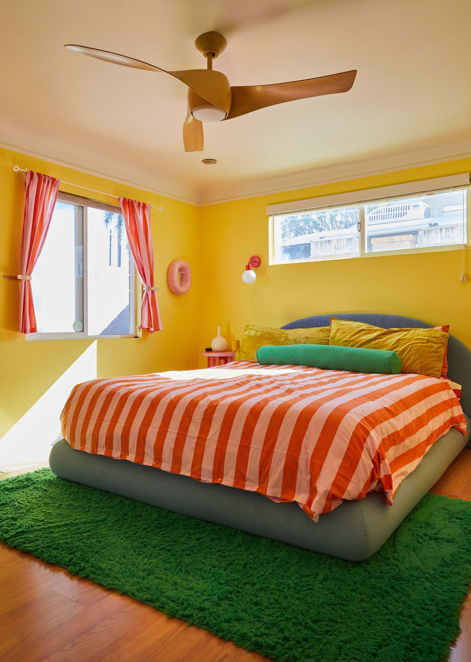 «Ήθελα απεγνωσμένα έναν καναπέ διαφορετικού χρώματος, αλλά δεν θέλαμε να ξοδέψουμε τα χρήματα σε έναν, οπότε με λίγο ψάξιμο κατάφερα να βρω έναν προμηθευτή στο Etsy που θα έφτιαχνε νέα καλύμματα μαξιλαριών» μοιράζεται η Haley ως παράδειγμα. Η Haley και ο Nick χρησιμοποίησαν επίσης χρώμα για να δημιουργήσουν μια όαση με περιορισμένο προϋπολογισμό — έβαψαν τους τοίχους του υπνοδωματίου κίτρινους και τον τοίχο του γραφείου μπλε.