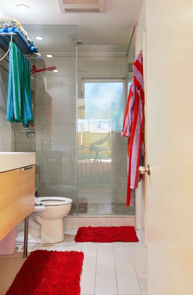 Το ζευγάρι αναβάθμισε επίσης το μπάνιο των επισκεπτών με τρόπο εύκολο για ενοικιαζόμενα, χάρη στα πλακάκια δαπέδου που ξεκολλάνε και κολλάνε.