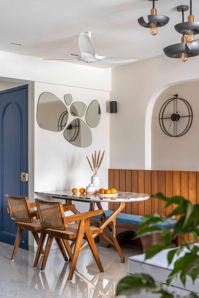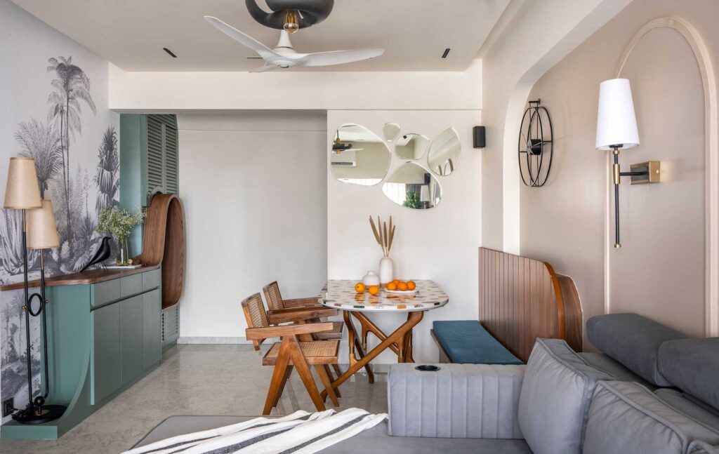 «Όταν είδαμε για πρώτη φορά αυτό το διαμέρισμα δύο υπνοδωματίων, ξέραμε ότι ο χώρος ήταν ιδανικός για εμένα και την Nidhi», ξεκινάει ο ιδιοκτήτης σπιτιού Anil Hadimani, ο οποίος με τη σύζυγό του, Nidhi Hadimani, αγόρασαν αυτό το διαμέρισμα 71 τετραγωνικών μέτρων στη Μουμπάι της Ινδίας το 2023. «Εμείς ως ζευγάρι λατρεύουμε να ταξιδεύουμε, να εξερευνούμε νέους πολιτισμούς, μέρη και φαγητό. Θέλαμε ο χώρος μας να έχει μια ατμόσφαιρα εξοχικού σπιτιού που να είναι λίγο από όλα, από σύγχρονο έως μποέμικο, αλλά ταυτόχρονα μοντέρνο και εμπνευσμένο από τέχνη και στυλ από όλο τον κόσμο».