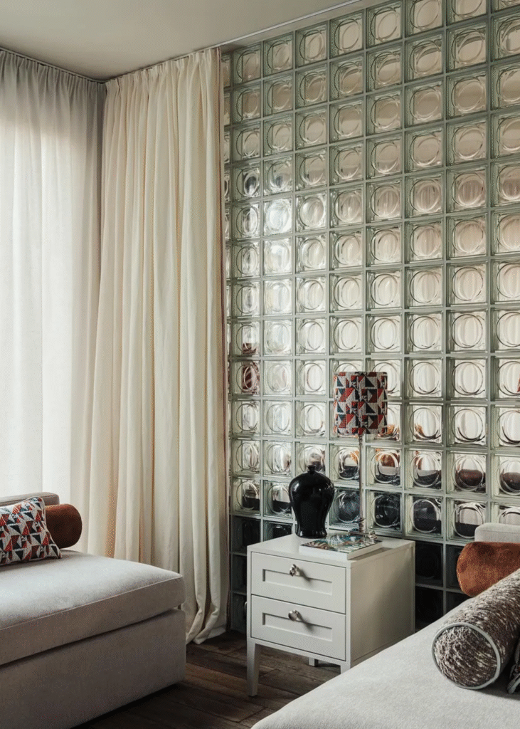 Και ενώ το υλικό μπορεί να είναι συνώνυμο με τα σχέδια της δεκαετίας του ’80, οι σύγχρονες ερμηνείες προσφέρουν έναν εντελώς νέο τρόπο χρήσης τους, εκμεταλλευόμενη το πόσο ευέλικτοι μπορούν να είναι διαφορετικοί τύποι υαλότουβλων. Αν και πάντα εγγενώς διακοσμητικά, τα υαλότουβλα αφορούν πλέον περισσότερο το οπτικό παιχνίδι και το πόσο δημιουργικοί μπορείτε να είστε μαζί τους, παρά να ενεργείτε με μια πιο λειτουργική νοοτροπία.