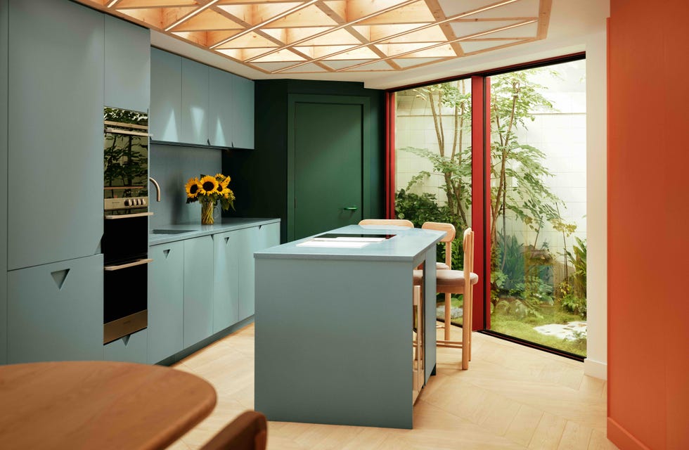 Στο Κένσινγκτον, το Moon House (στην πιο κάτω φωτογραφία) είναι μια κάποτε «σκοτεινή και ξεπερασμένη» μεζονέτα που ανακαινίστηκε για δύο συλλέκτες έργων τέχνης. «Ισορροπεί τις πρακτικές ανάγκες ενός λειτουργικού σπιτιού με τον χαρακτήρα μιας γκαλερί τέχνης» λέει η Stewart.
