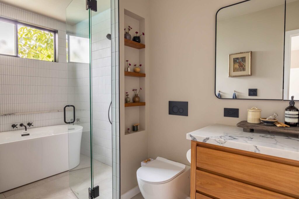Αυτό το σπίτι 150 τετραγωνικών μέτρων στη γειτονιά Lake Balboa της κοιλάδας San Fernando χτίστηκε το 1952 και ήταν σε καλή κατάσταση με πολλές δυνατότητες όταν το αγόρασαν οι Yassi και Jason Yarger το 2022. «Η διαρρύθμιση ήταν αρκετά κλειστή, με μια ξεχωριστή κουζίνα μακριά από τον χώρο διαβίωσης. Προσπαθήσαμε όσο το δυνατόν περισσότερο να ανοίξουμε τα πράγματα και να παίξουμε με τον χώρο όσο το δυνατόν περισσότερο» γράφει η Yassi.