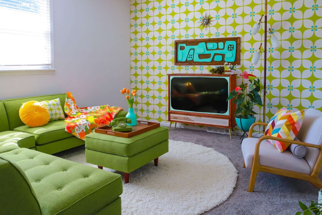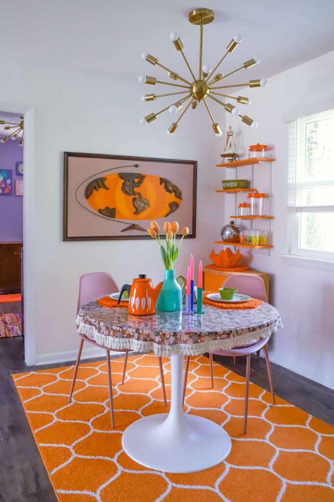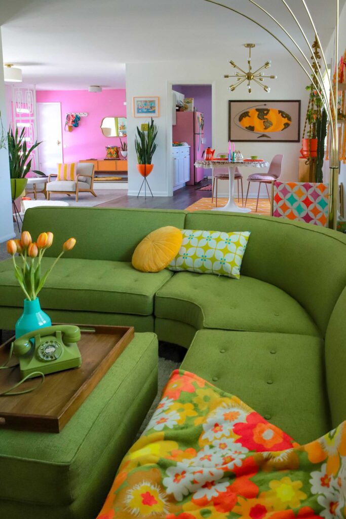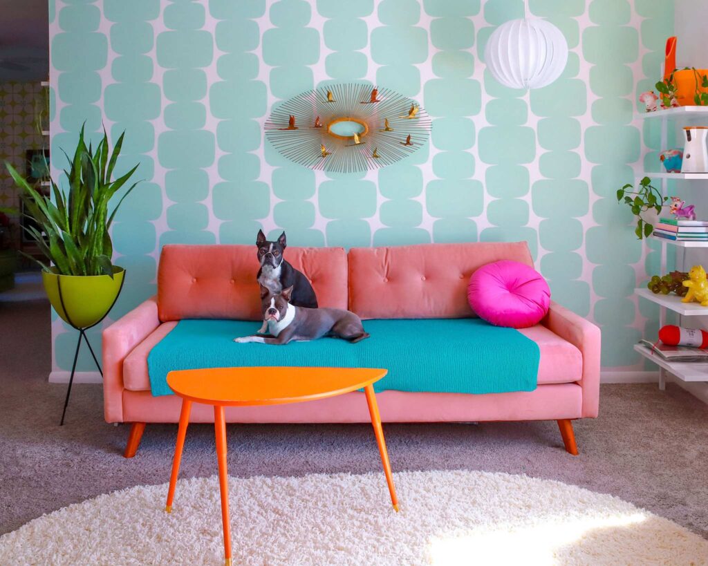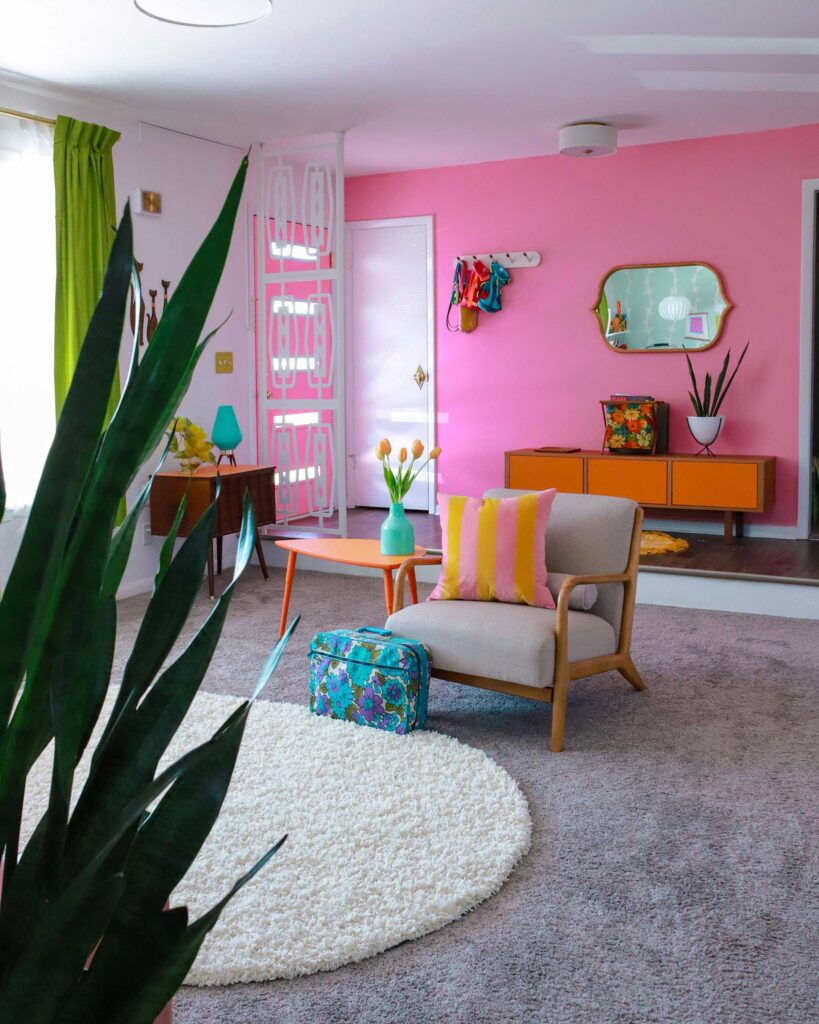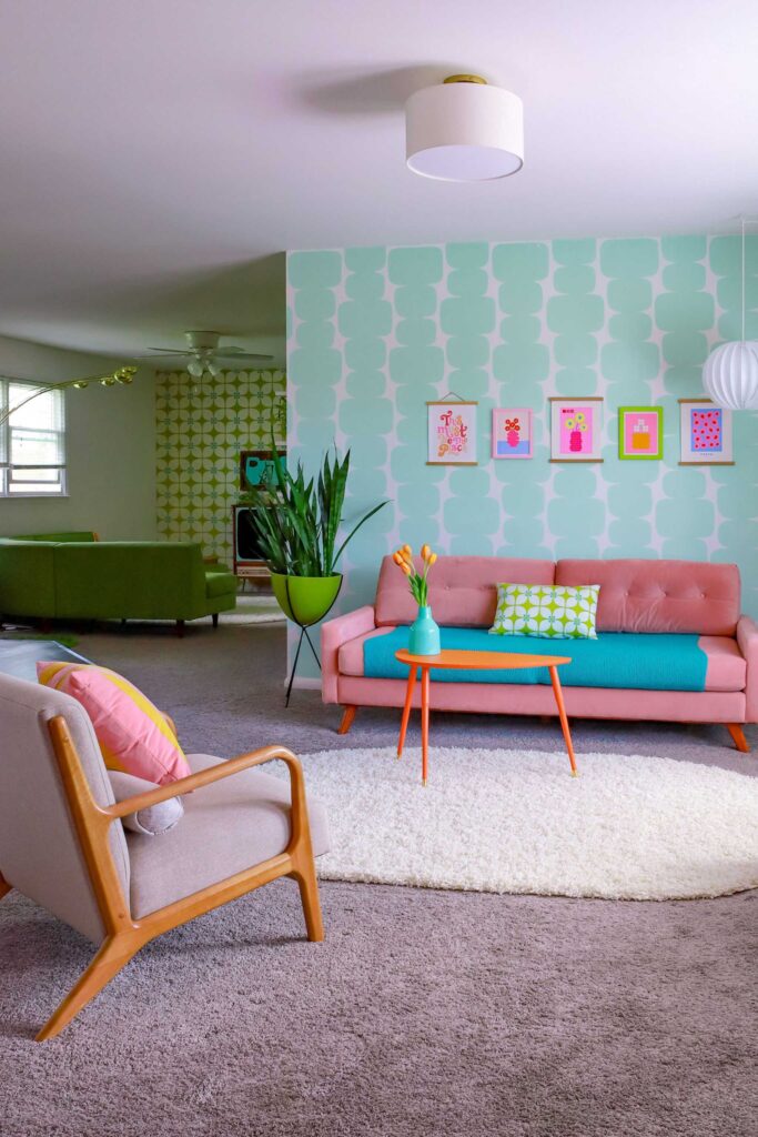 Τώρα, έξι χρόνια αργότερα, υπάρχουν ακόμα μερικοί λευκοί τοίχοι στο σπίτι – αλλά το μεγαλύτερο μέρος του γκρι έχει εξαφανιστεί. Η Mary λέει ότι ολόκληρο το σπίτι «είναι πολύχρωμο με ταπετσαρία με ρετρό σχέδια, ολόκληρους τοίχους μονόχρωμους και φωτεινά, χαρούμενα, πολύχρωμα vintage κομμάτια σε κάθε γωνία».