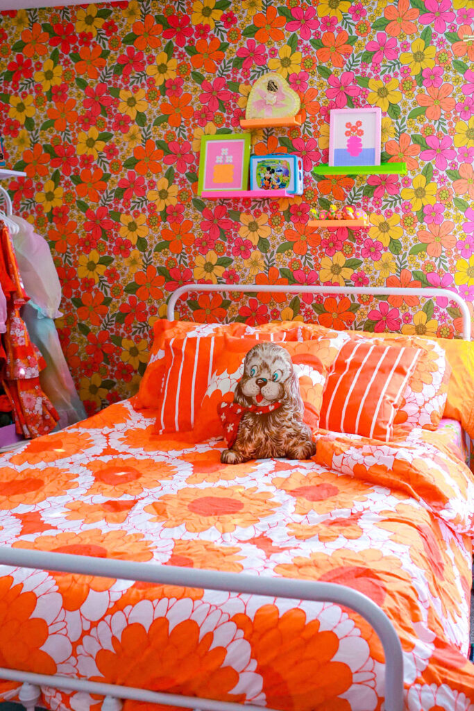 Ξεκίνησε την απογύμνωση του σπιτιού της βάφοντας κάθε τοίχο με λευκή απόχρωση για να δημιουργήσει έναν κενό καμβά. «Έπειτα, το πρώτο δωμάτιο που άλλαξα ήταν το δωμάτιο επισκεπτών. Βρήκα την πιο δυνατή φλοράλ ταπετσαρία που μπορούσα να βρω και έφτιαξα έναν ολόκληρο τοίχο. Ήθελα η αίσθηση που είχα όταν κοίταζα σε αυτό το δωμάτιο να είναι η αίσθηση που είχα σε όλο το σπίτι!»