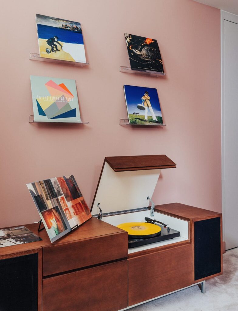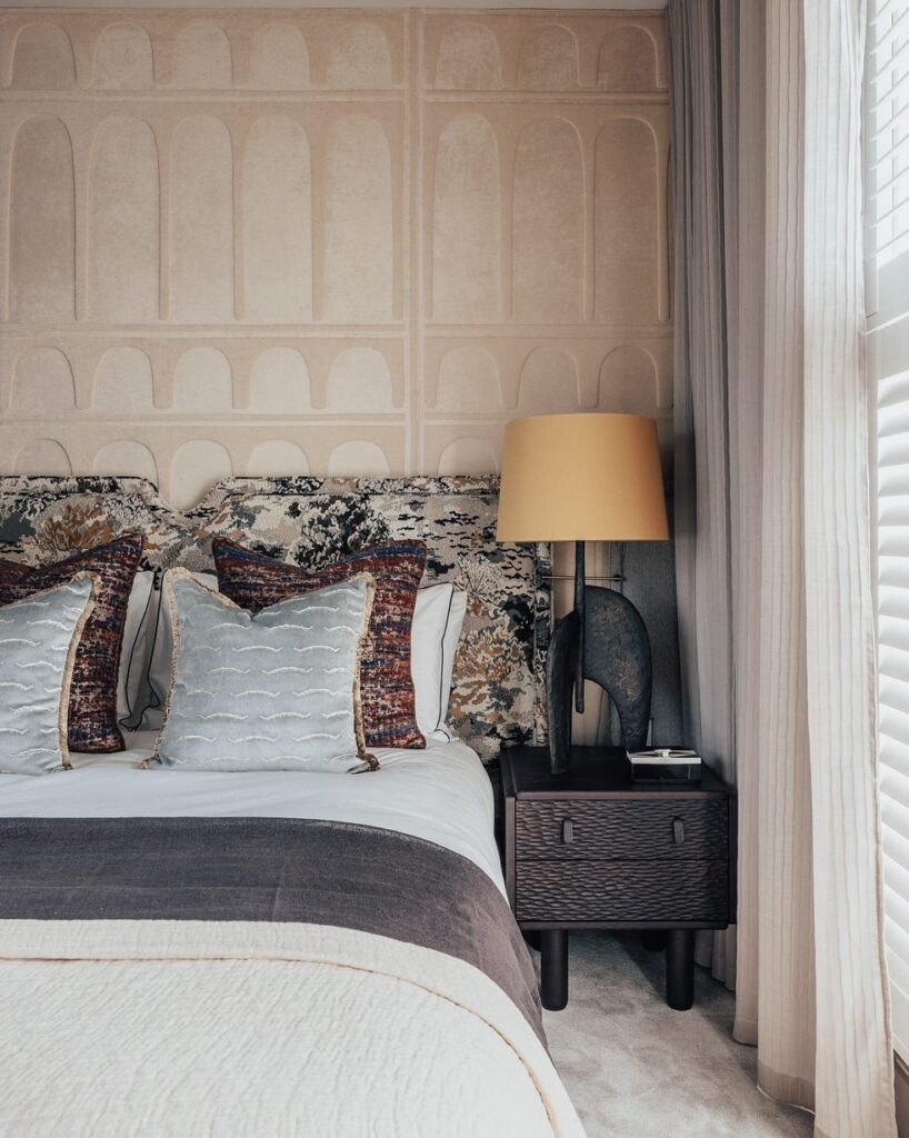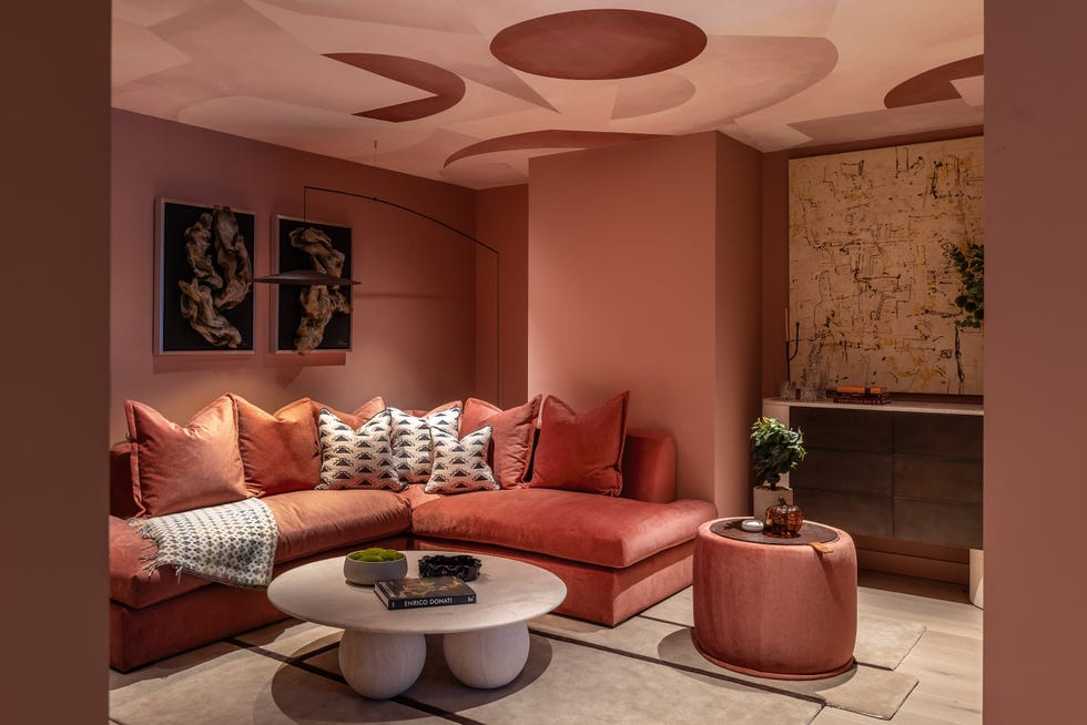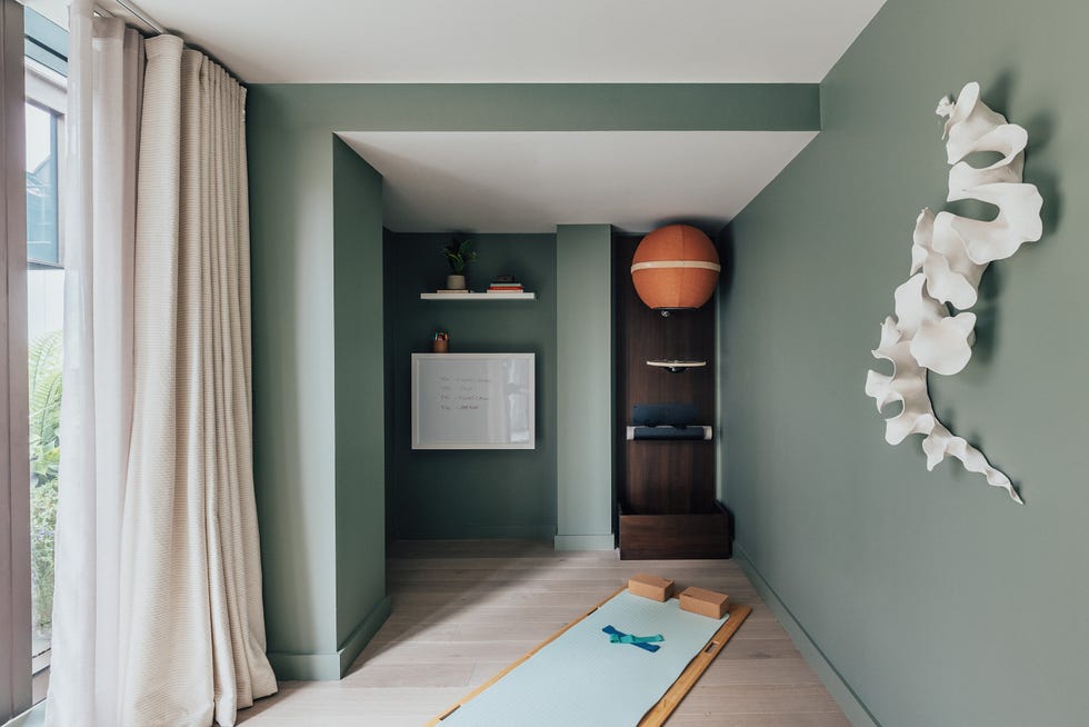 Η παλέτα υλικών σε όλο το σπίτι είναι αισθησιακή αλλά και παιχνιδιάρικη. Στο ένα άκρο του φάσματος, οι επισκέπτες καλούνται να βυθιστούν στο κόκκινο δέρμα, το πράσινο βελούδο, το μελί τούβλο, την καραμέλα καρυδιά, το ζαφειρί γυαλί και τους dusty ροζ τοίχους. Στο σαλόνι, τα ζεστά τούβλα και η ταπετσαρία σε χρώμα κέδρου προσθέτουν υφή και άνεση, και τα δύο μια διακριτική αναφορά στη βιομηχανική κληρονομιά της Powerhouse.