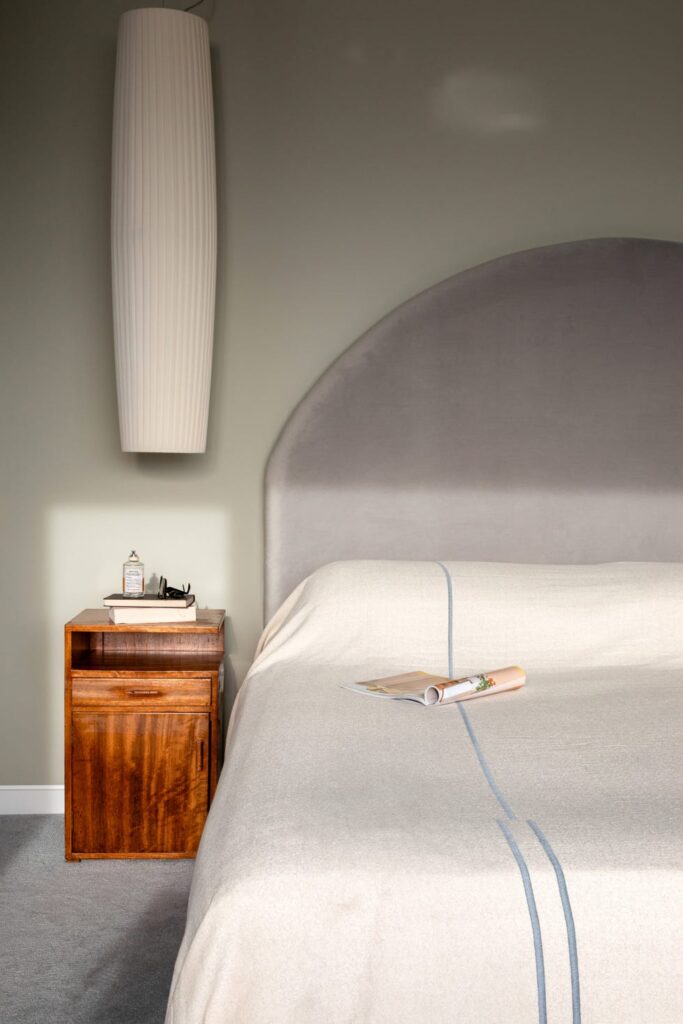 Στον επάνω όροφο, ενώ τα χρώματα είναι ουδέτερα, τα έπιπλα έχουν πλούσια υφή. «Μπορείτε να φανταστείτε πώς είναι να νιώθετε όταν ο άνεμος ουρλιάζει και η θάλασσα είναι τρικυμιώδης, χτυπώντας τα παράθυρα» λέει η Caroline. «Είναι σαν ένα καθησυχαστικό καταφύγιο».