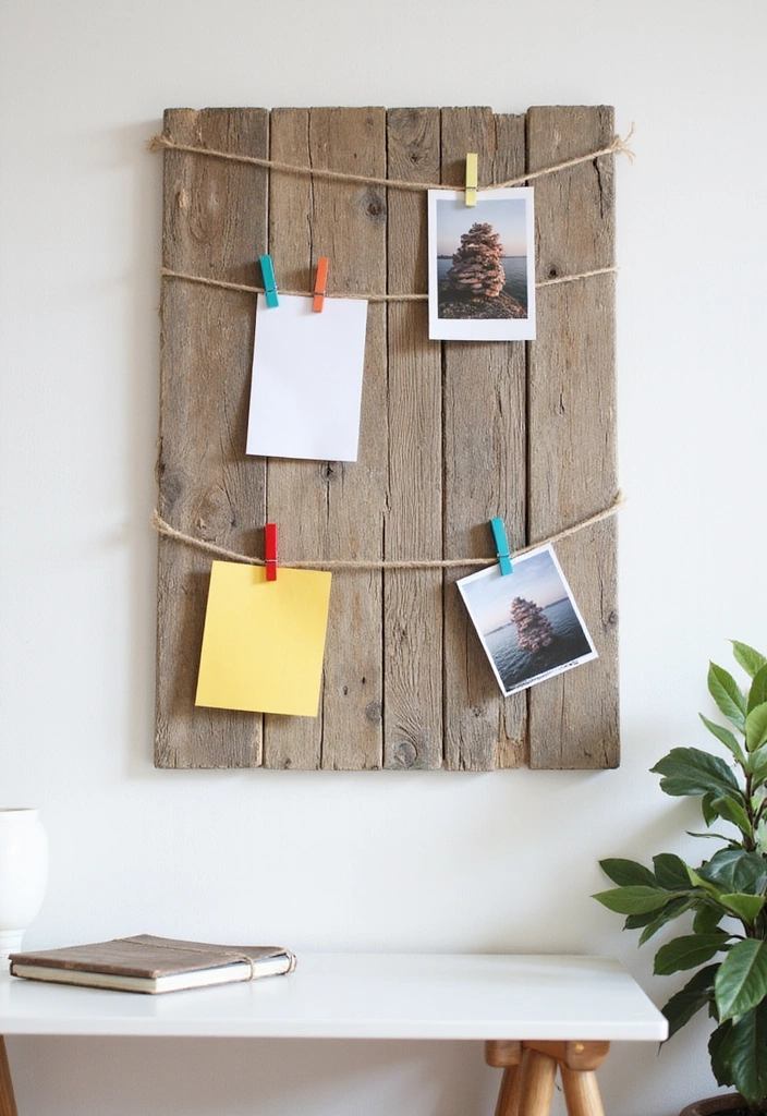 Μεταμορφώστε τον χώρο σας με μια γοητευτική ρουστίκ ξύλινη πινακίδα που φέρνει την ομορφιά της φύσης στο εσωτερικό. Ξεκινήστε επιλέγοντας ένα κομμάτι ξύλου που έχει ανακυκλωθεί ή μια απλή ξύλινη πινακίδα και στη συνέχεια τρίψτε το με γυαλόχαρτο για ένα λείο φινίρισμα. Έχετε την επιλογή να αφήσετε το ξύλο στη φυσική του κατάσταση, να το βάψετε σε μια απαλή παστέλ απόχρωση ή να εφαρμόσετε ένα βερνίκι για να τονίσετε όμορφα την υφή. Για να προσθέσετε μια λειτουργική πινελιά, στερεώστε σπάγκο ή σύρμα κατά μήκος της πινακίδας, επιτρέποντάς σας να κρεμάσετε φωτογραφίες και σημειώσεις με υπέροχα μανταλάκια.