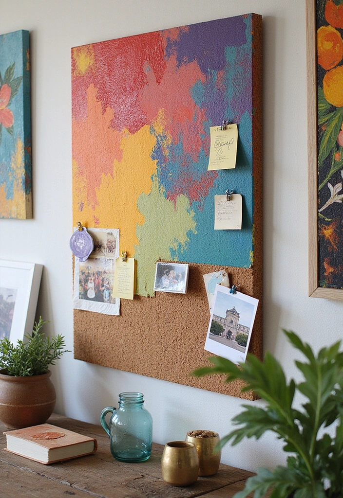 Για ένα εντυπωσιακό σχέδιο που συμπληρώνει τη διακόσμησή σας, σκεφτείτε να χρησιμοποιήσετε ακρυλικό χρώμα για να ζωντανέψετε το όραμά σας. Μόλις ο καμβάς σας βαφτεί και στεγνώσει, χρησιμοποιήστε μια ισχυρή κόλλα, για να στερεώσετε έναν πίνακα από φελλό. Αφού στερεωθεί η κόλλα, ο πίνακας σας είναι έτοιμος, απλώς καρφιτσώστε σημειώσεις, φωτογραφίες και άλλα αναμνηστικά απευθείας στην επιφάνεια του φελλού.
