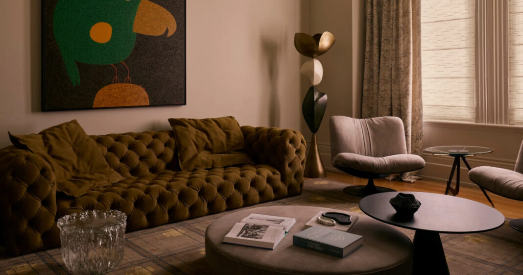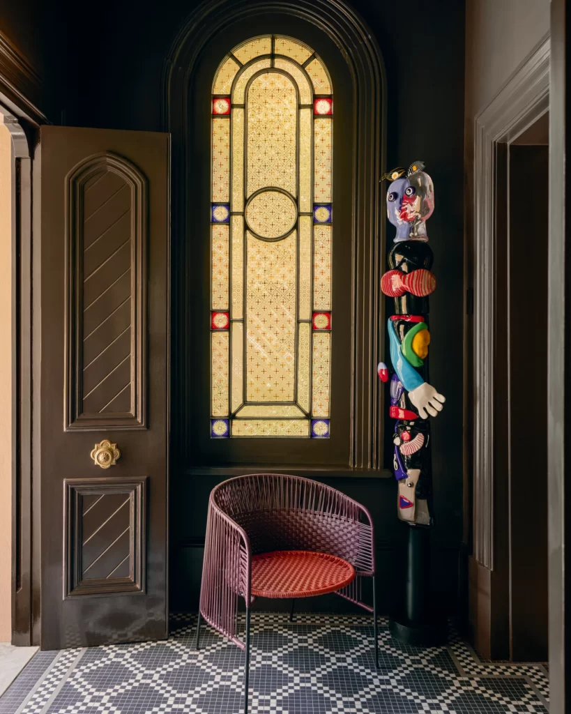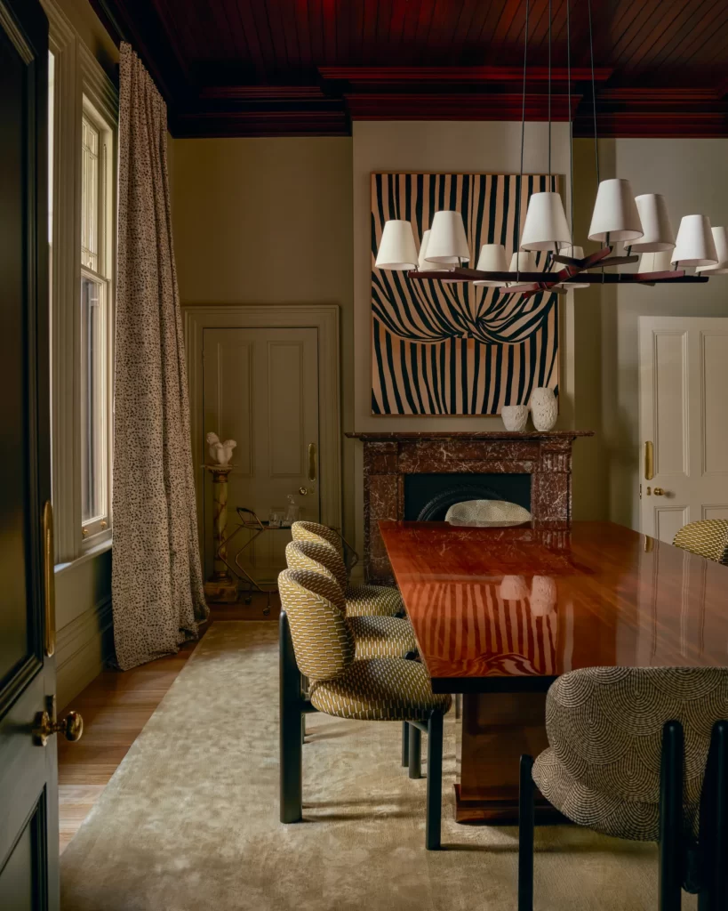 Όντας μια ιστορική μεζονέτα, αυτό σήμαινε διακόσμηση με γήινες αποχρώσεις, επιλέγοντας μια σοκολατένια, μουσταρδί παλέτα που να ταιριάζει στη ζεστασιά της. Λέει ότι το χαλί με τις χρυσές πινελιές που βρήκε για το σαλόνι της φάνηκε σαν «ιδιοφυές, ο τρόπος που αυτά τα μεταλλικά νήματα παγιδεύουν τον απογευματινό ήλιο». Και, φυσικά, υπάρχουν και τα έργα τέχνης, όπως ο καθρέφτης πάνω από το τζάκι στο σαλόνι και τα γραφικά έργα της Caroline Walls στην τραπεζαρία, τα οποία και τα δύο είχαν ήδη εγκατασταθεί όταν ανέλαβε η Simone.