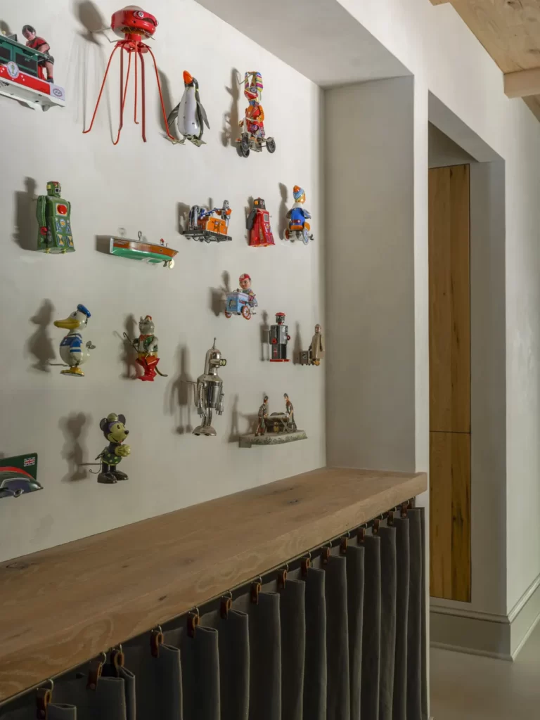 Ένας τρόπος για να αποφύγετε μια κουρασμένη αισθητική είναι να επιλέξετε κάτι λίγο πιο απροσδόκητο, όπως vintage παιχνίδια. «Η ιδιοκτήτρια του σπιτιού είχε μια συλλογή από μικροσκοπικά τενεκεδένια παιχνίδια μιας ζωής και θέλαμε να τα κάνουμε να ενσωματωθούν στην αρχιτεκτονική και την ατμόσφαιρα του σπιτιού» εξηγεί η Julia Miller, δημιουργική διευθύντρια της Yond Interiors και σχεδιάστρια του χώρου που φαίνεται παραπάνω.