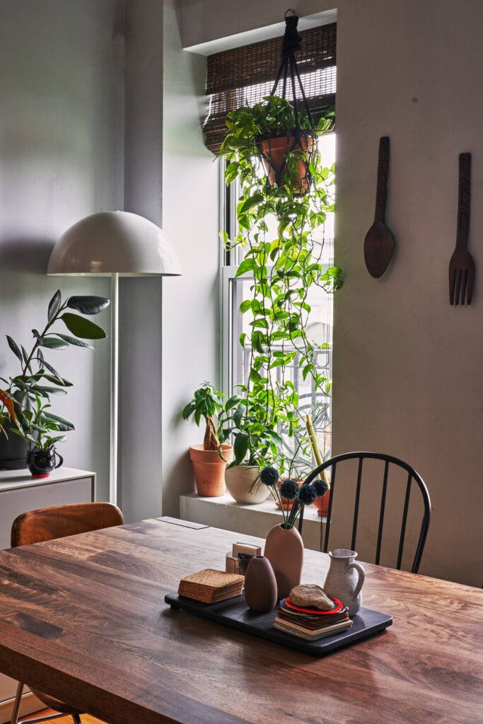 Είναι επίσης μια αντανάκλαση του υποβάθρου και των δύο. «Ένα πράγμα που πραγματικά προσπάθησα να ενσωματώσω στο σπίτι μας είναι ένα κομμάτι από τις ρίζες μου» ξεκινά η Roxy. «Γεννήθηκα και μεγάλωσα στις Φιλιππίνες και ήθελα να φέρω τις υφές του σπιτιού μου. Αυτό σήμαινε ότι είχα πολύ ψάθα, σκούρο ξύλο, μπαμπού και πράσινο. Επίσης, το να έχω έργα τέχνης με κουτάλια και πιρούνια να κρέμονται πάνω από την τραπεζαρία είναι πολύ Φιλιππινέζικο! Ο σύζυγός μου, ο οποίος είναι από την Ανατολική Ακτή, είναι πιο συνηθισμένος στο ζεστό, κρύο κλίμα, οπότε το να πρέπει να παντρέψουμε τα δύο ήταν πολύ διασκεδαστικό. Επίσης, επειδή και οι δύο εργαζόμαστε στη βιομηχανία του κινηματογράφου, υπάρχουν πολλά στοιχεία στο σπίτι μας που το αναδεικνύουν αυτό».